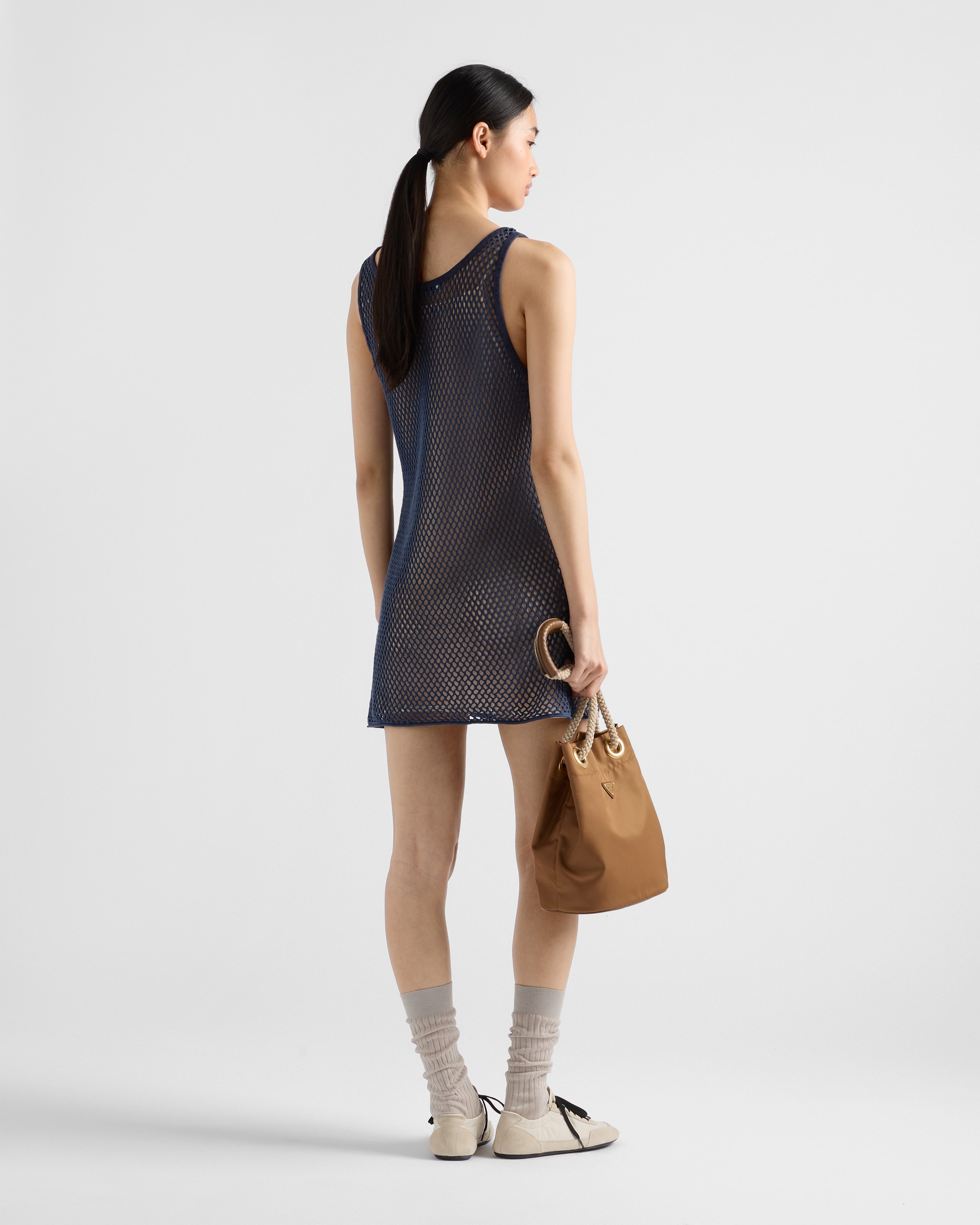 Платье из хлопковой сетки Prada, темно-синий