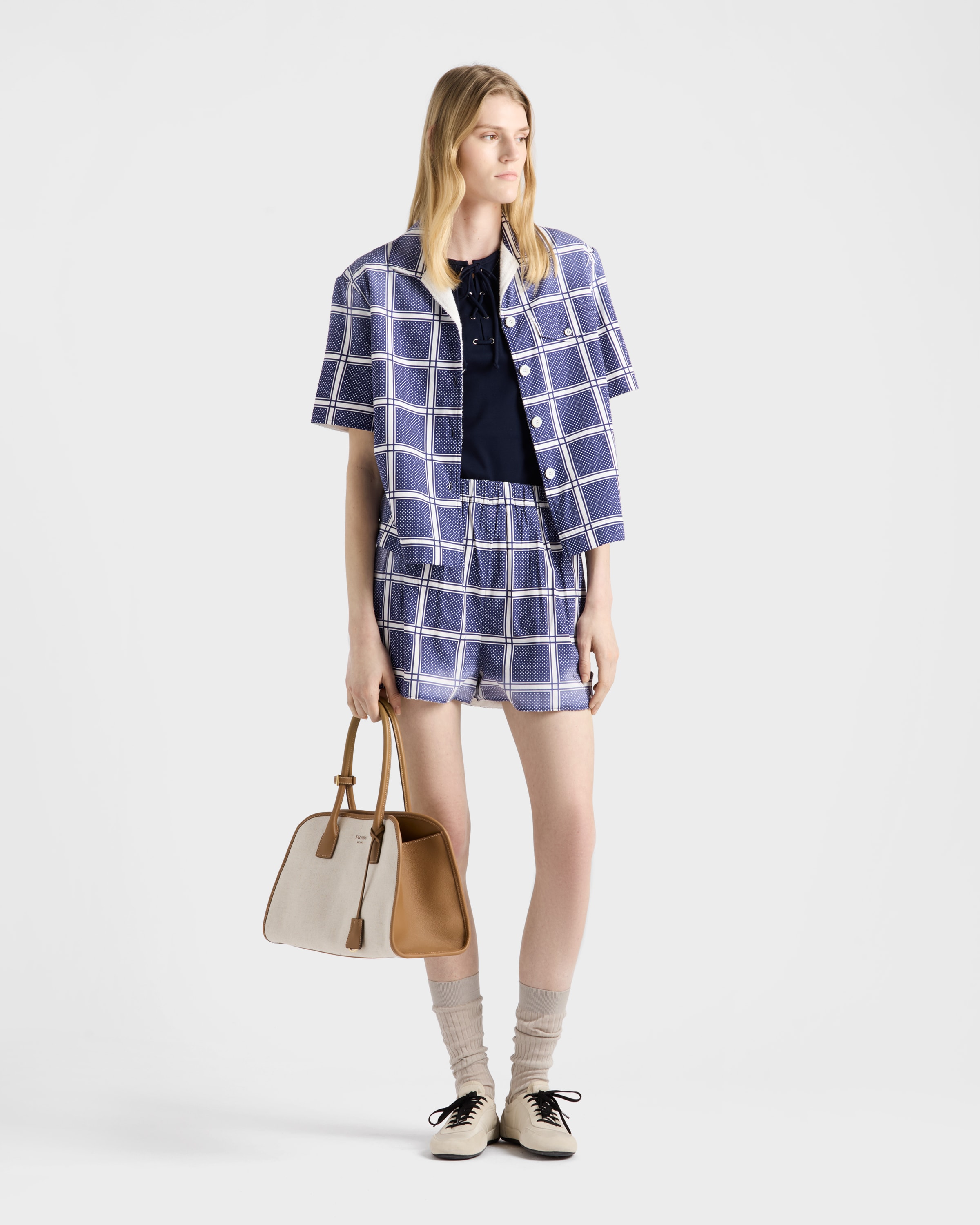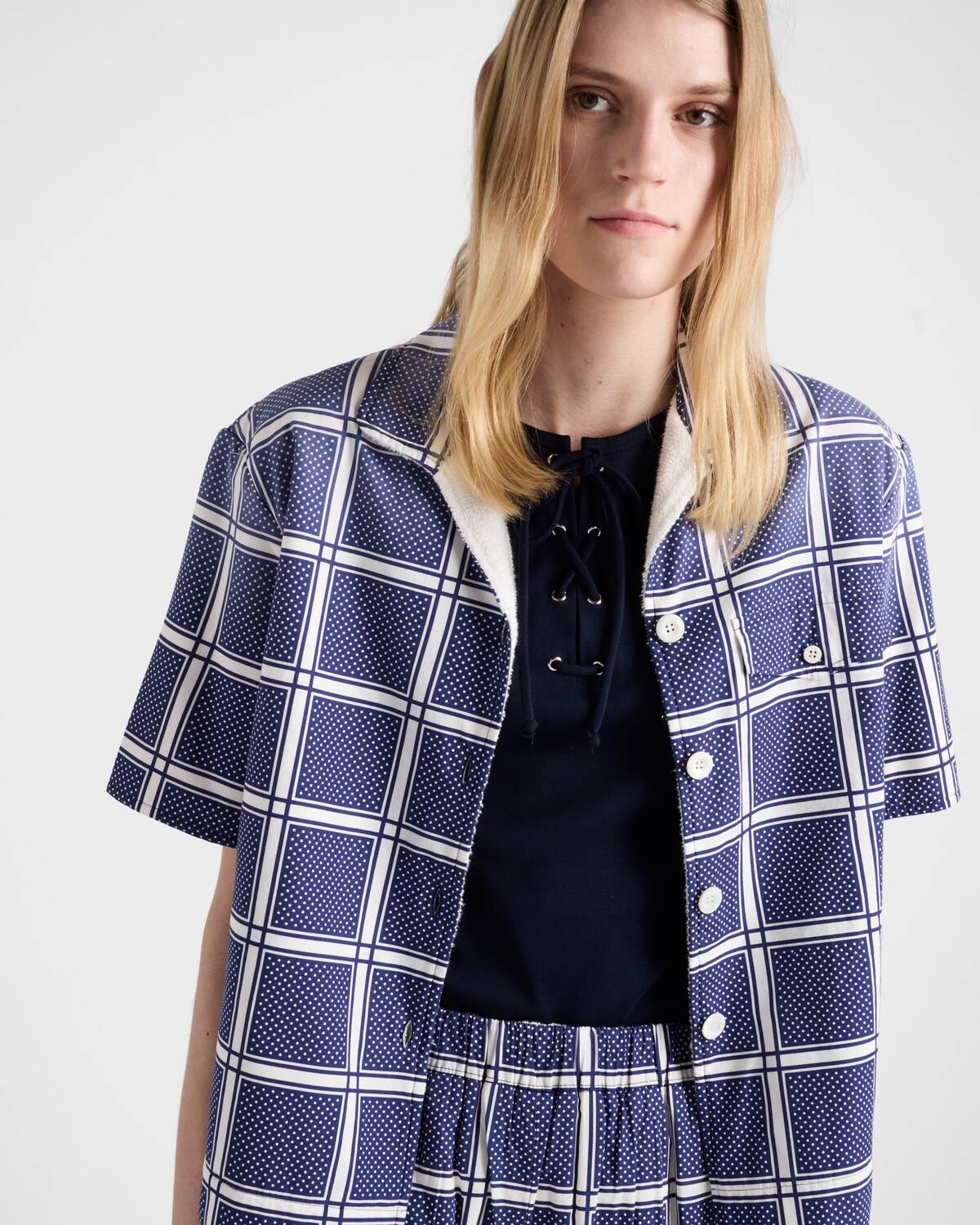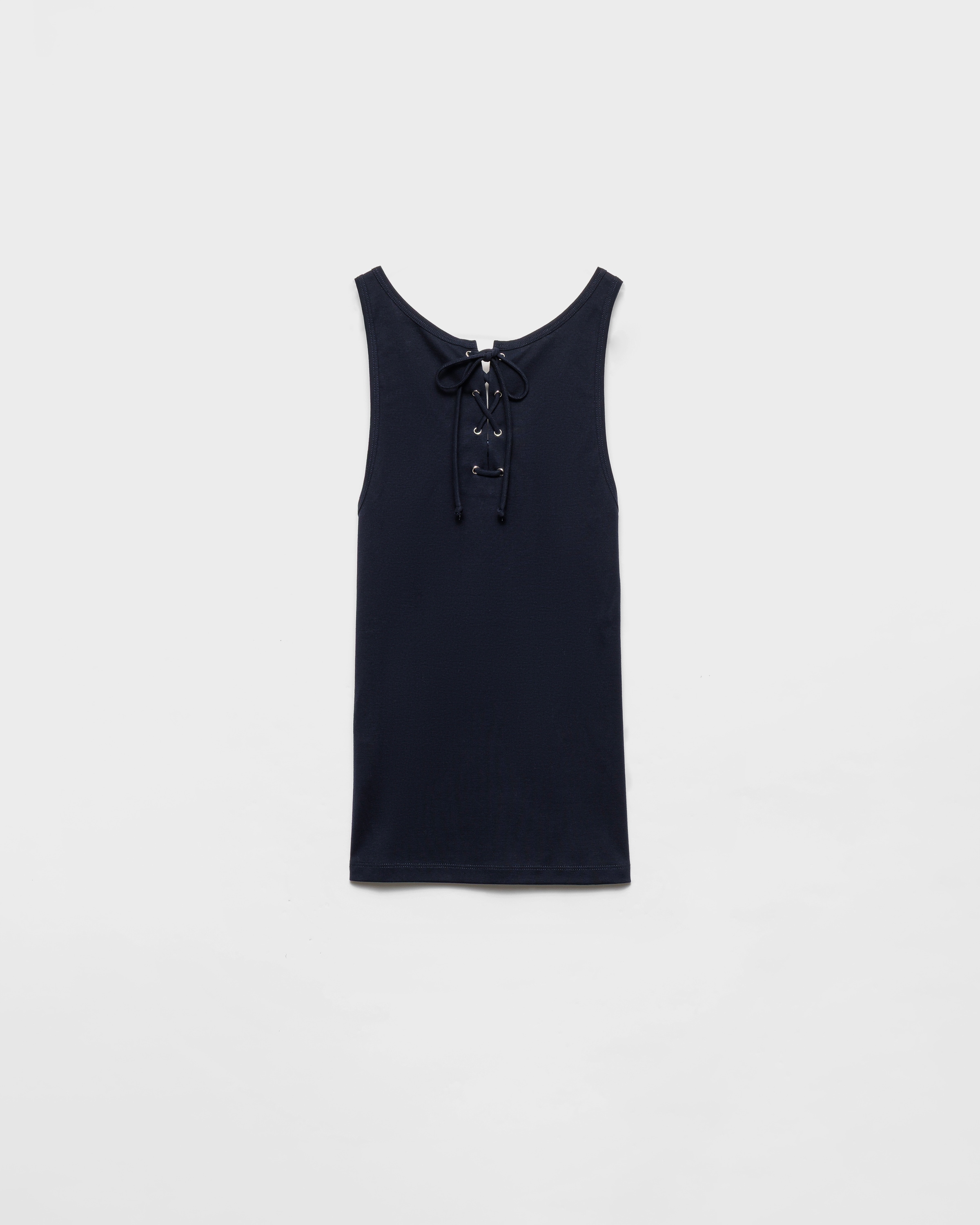 Хлопковая майка с кружевами Prada, темно-синий