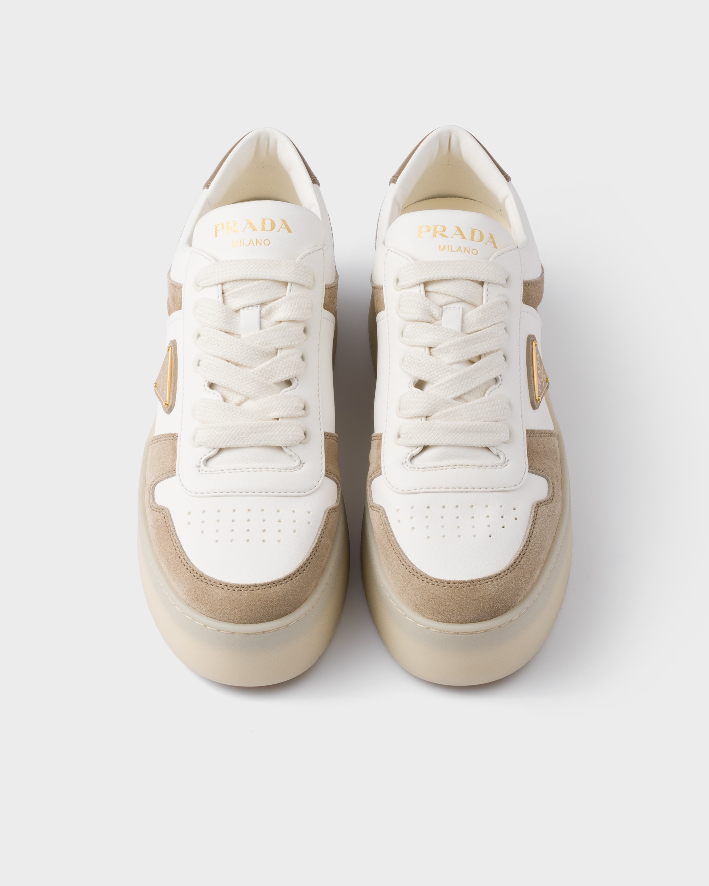 Кроссовки Downtown Bold из наппы и замши Prada, песочный бежевый