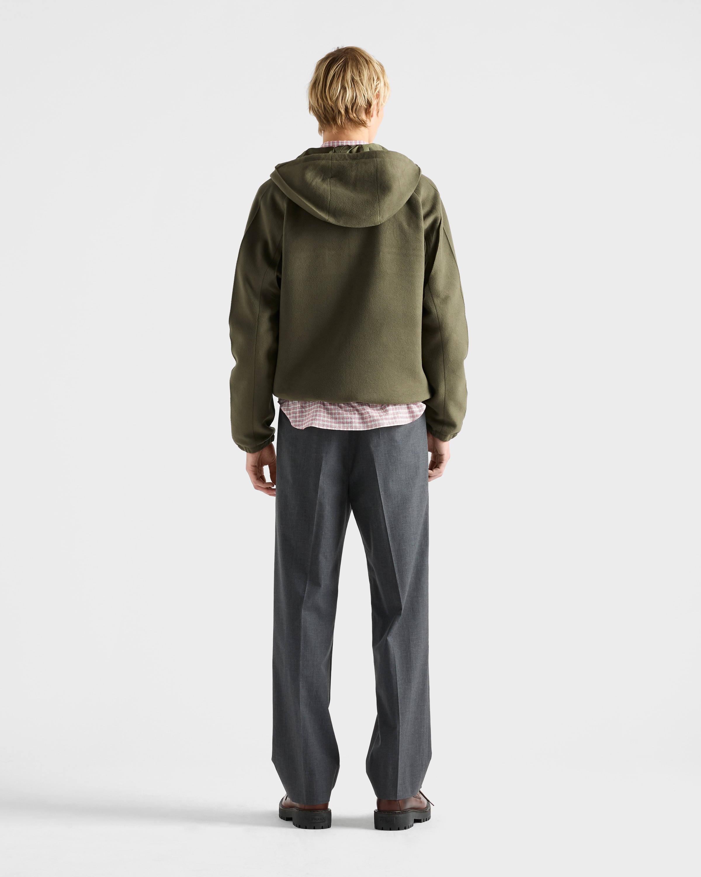 Блузон-куртка с капюшоном из технической ткани Prada, милитари зеленый