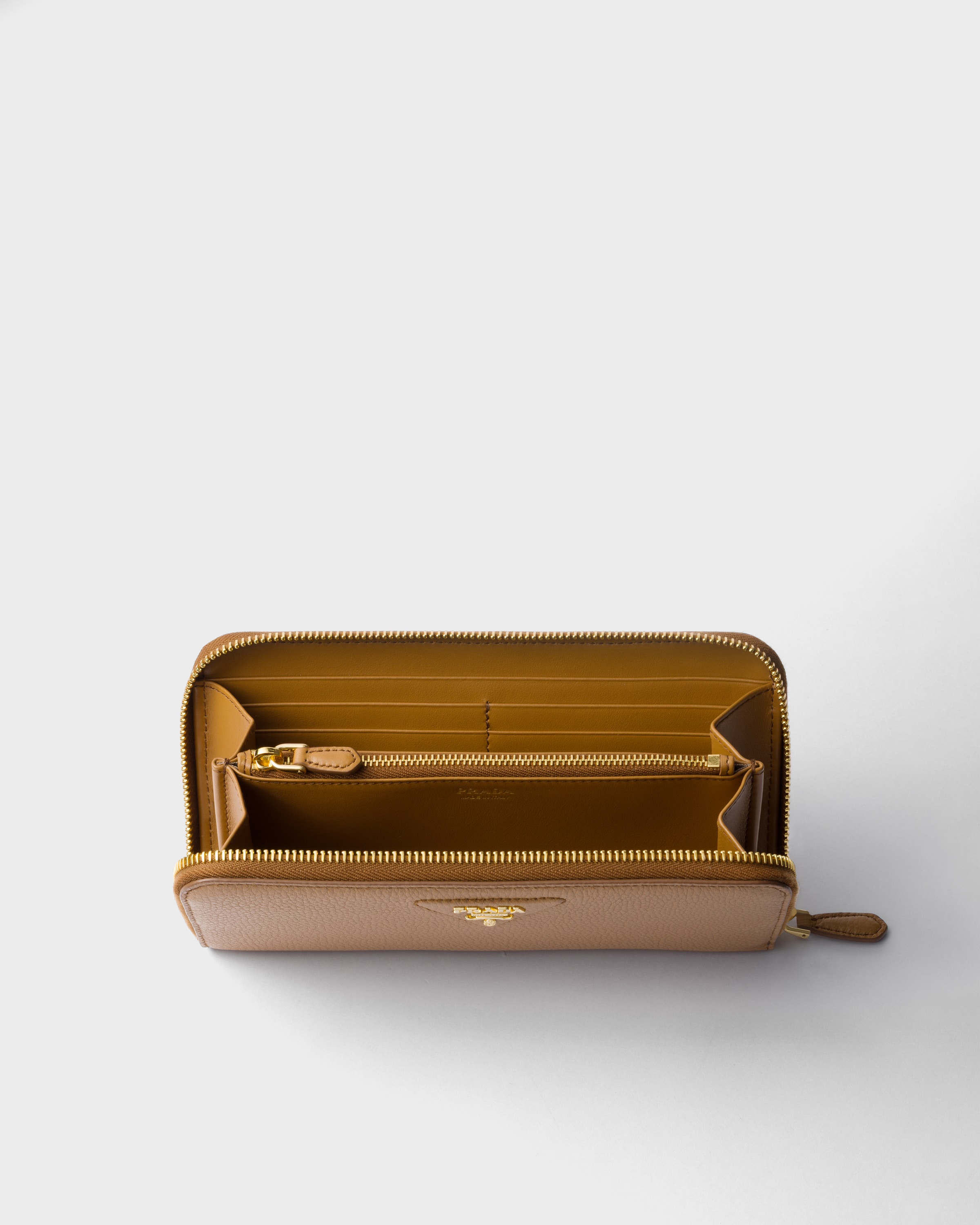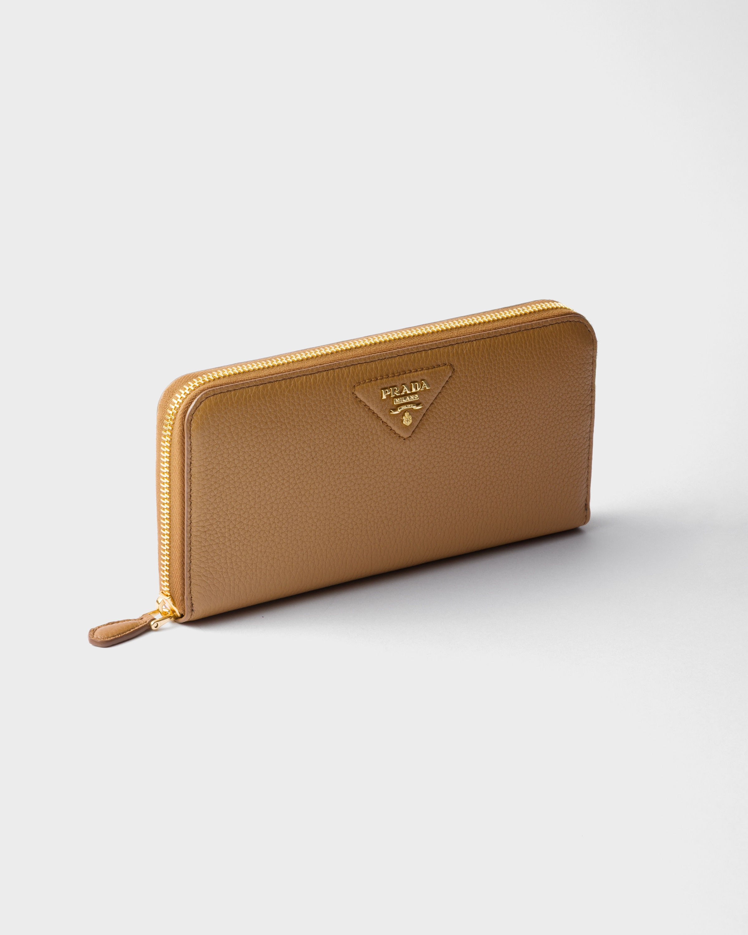 Большой кожаный кошелек Prada, карамель