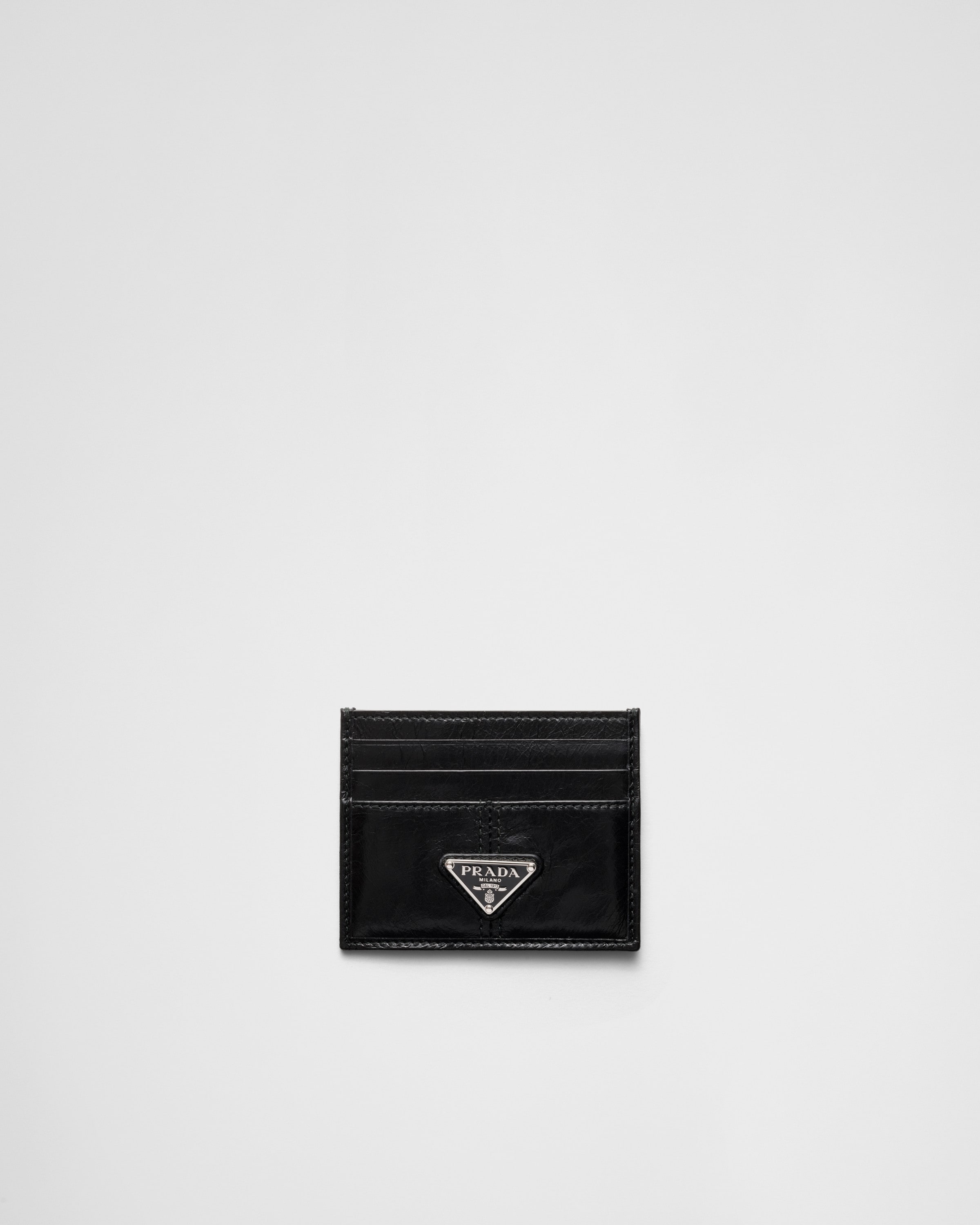 Кожаный держатель для карт Prada, черный