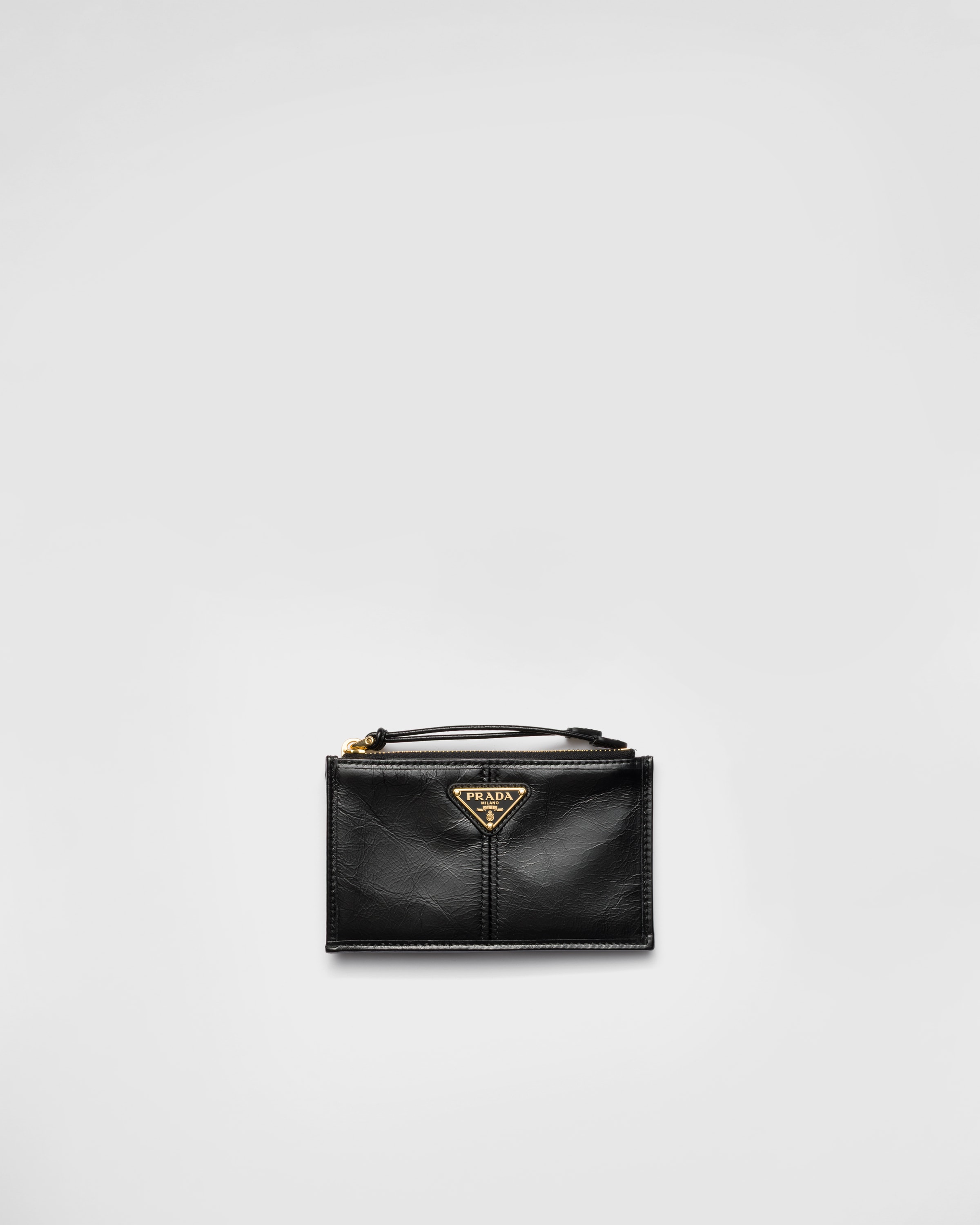 Кожаный держатель для карт на молнии Prada, черный 53 284₽