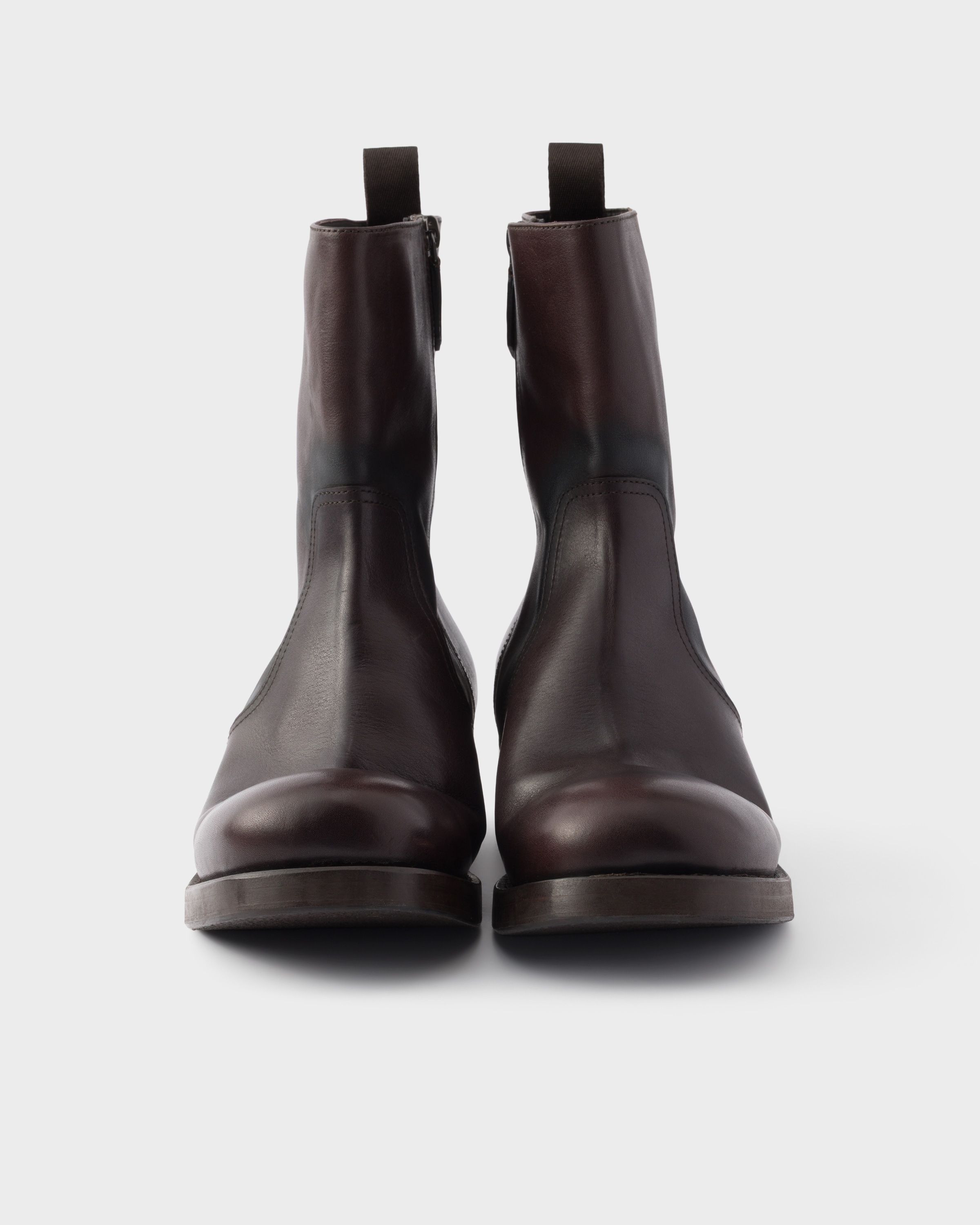 Кожаные сапоги до середины икры Prada, темно-коричневый 165 356₽