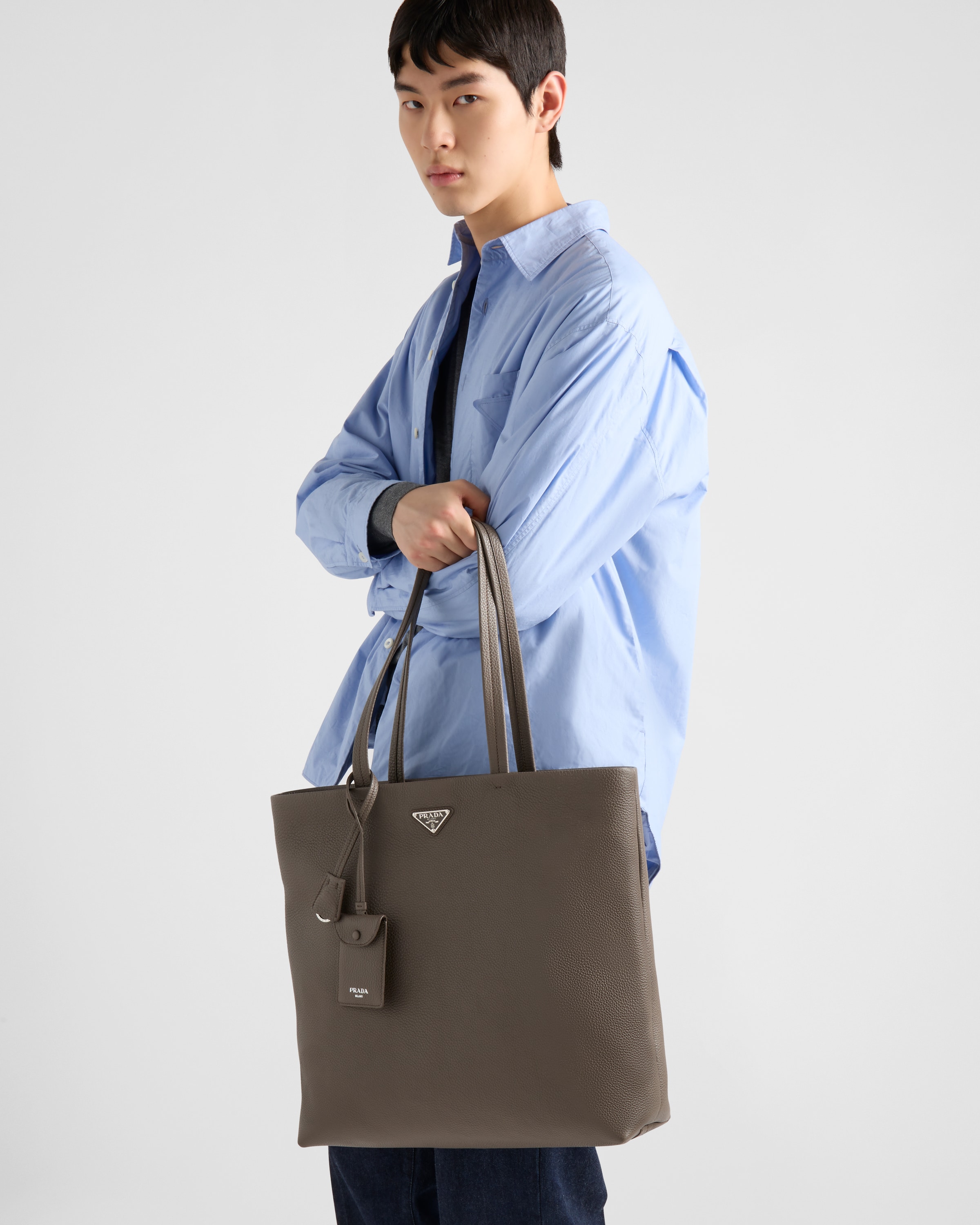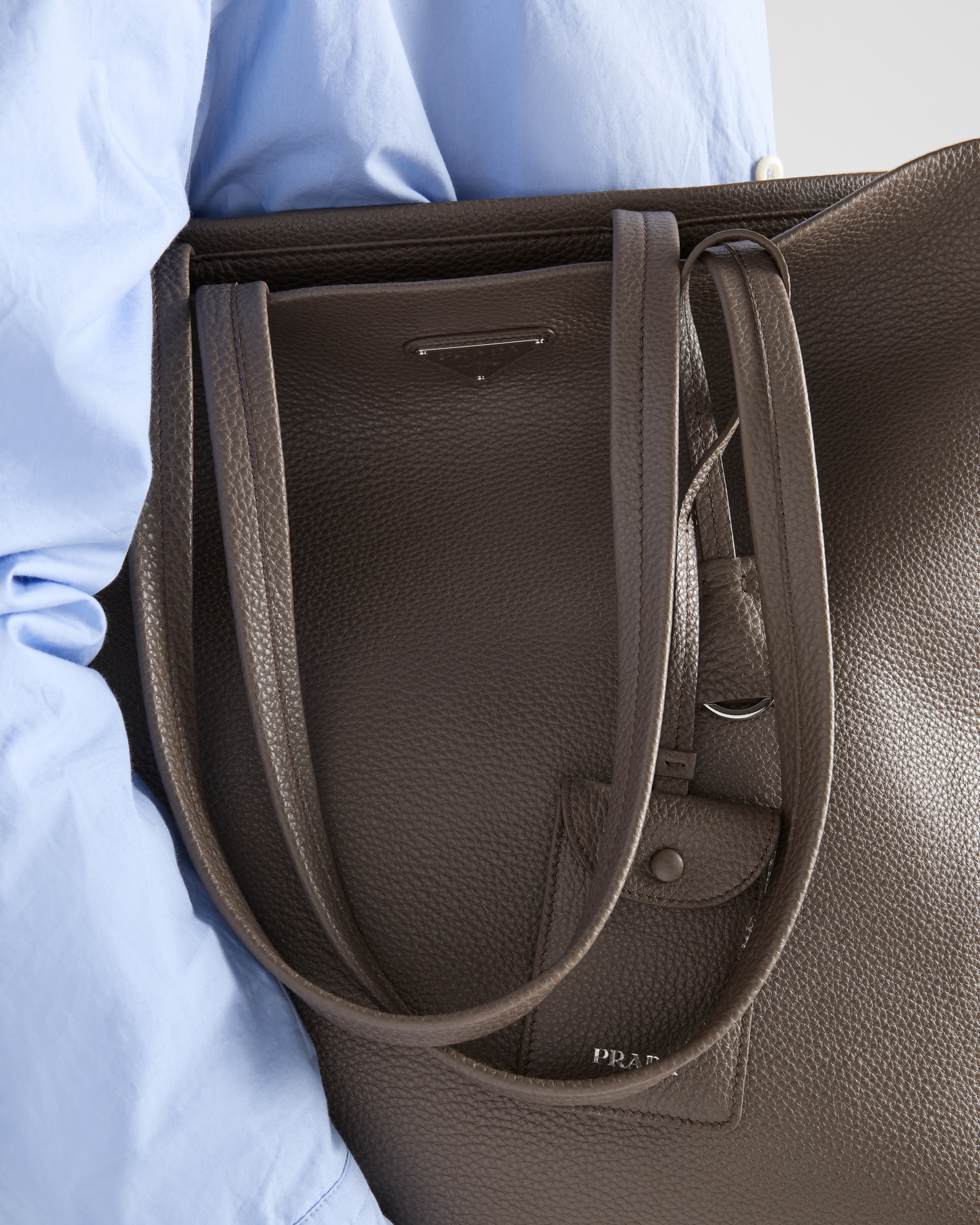 Кожаная сумка-тоут Prada, бамбуковый серый