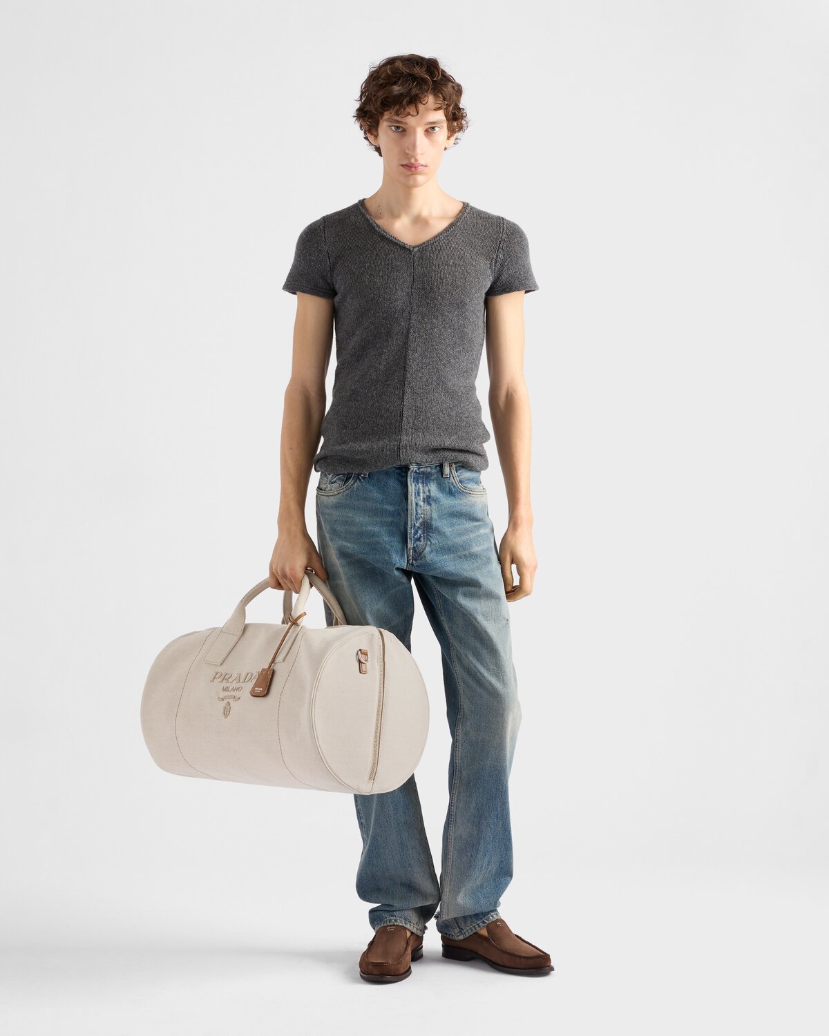 Сумка-даффл из льняного бленда Prada, натуральный 264 552₽
