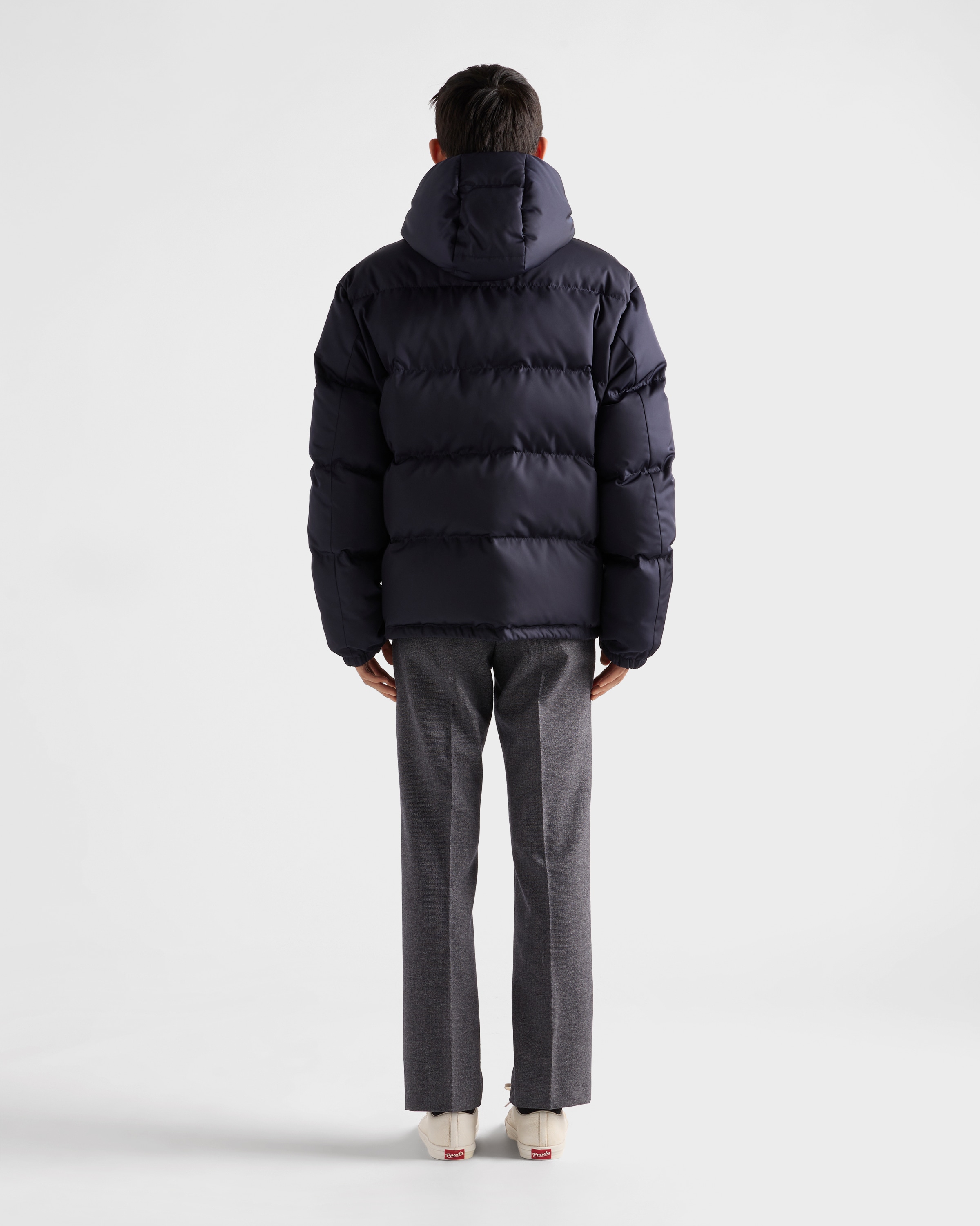 Пуховик средней плотности с капюшоном из переработанного нейлона Re-Nylon Prada, синий 266 692₽