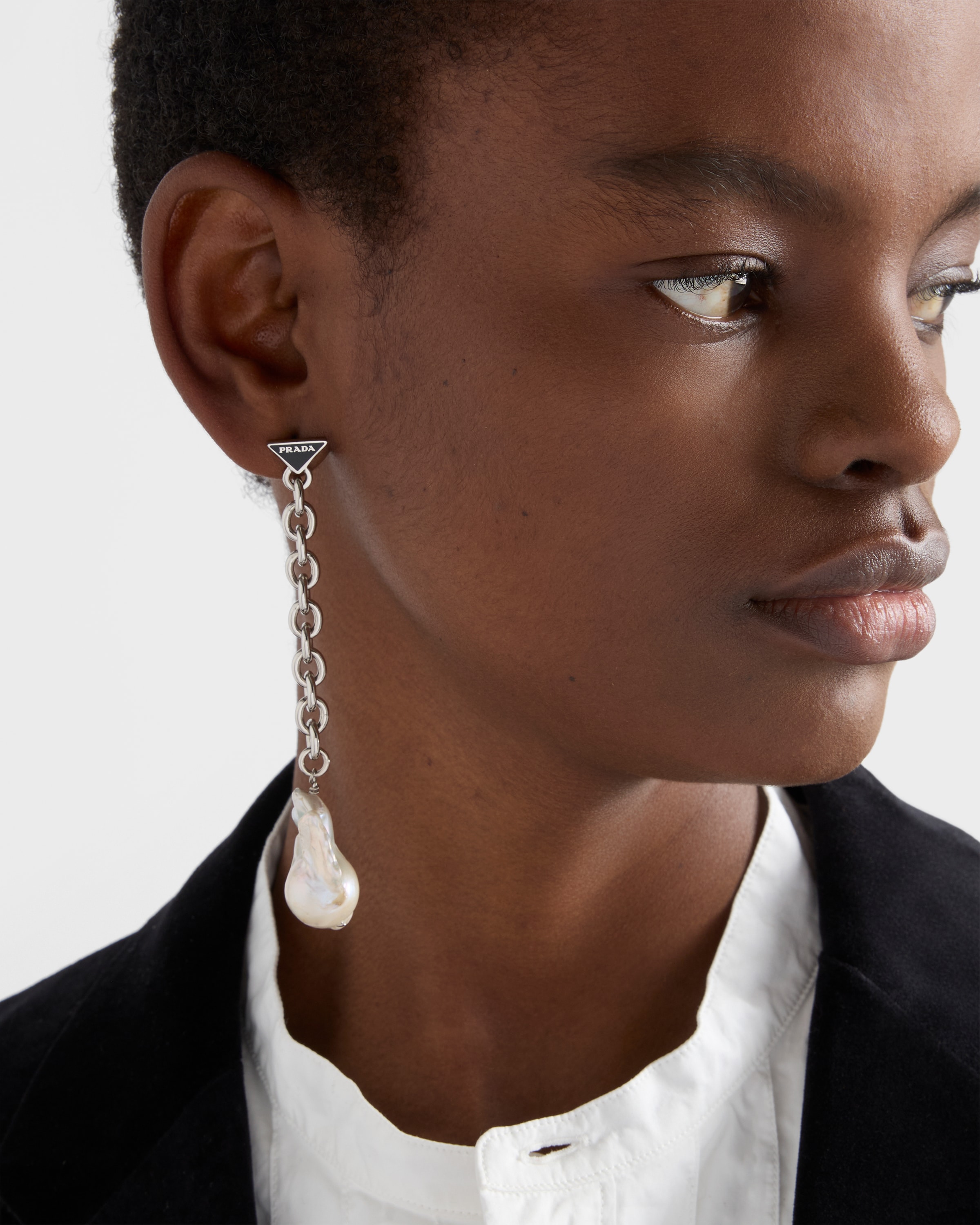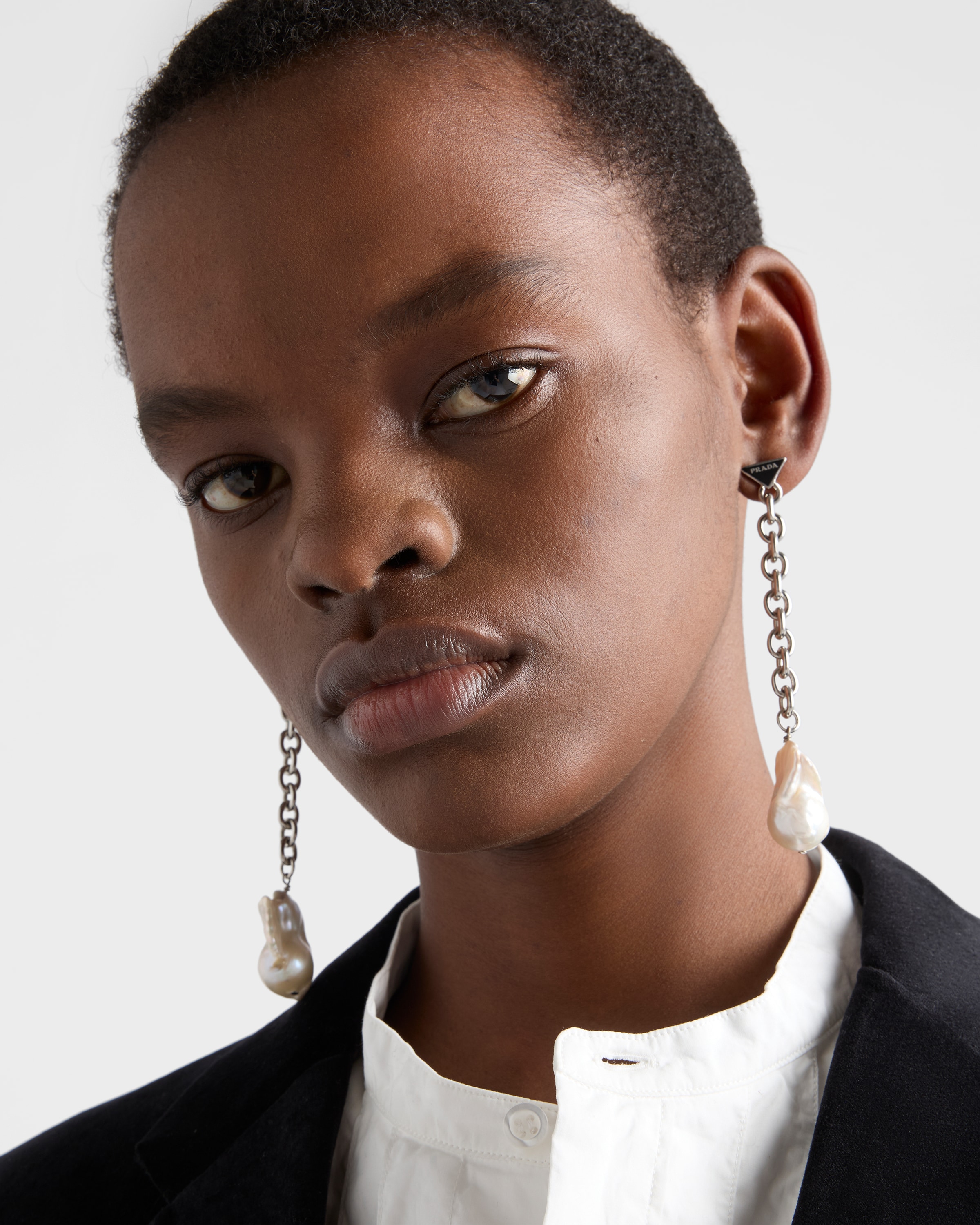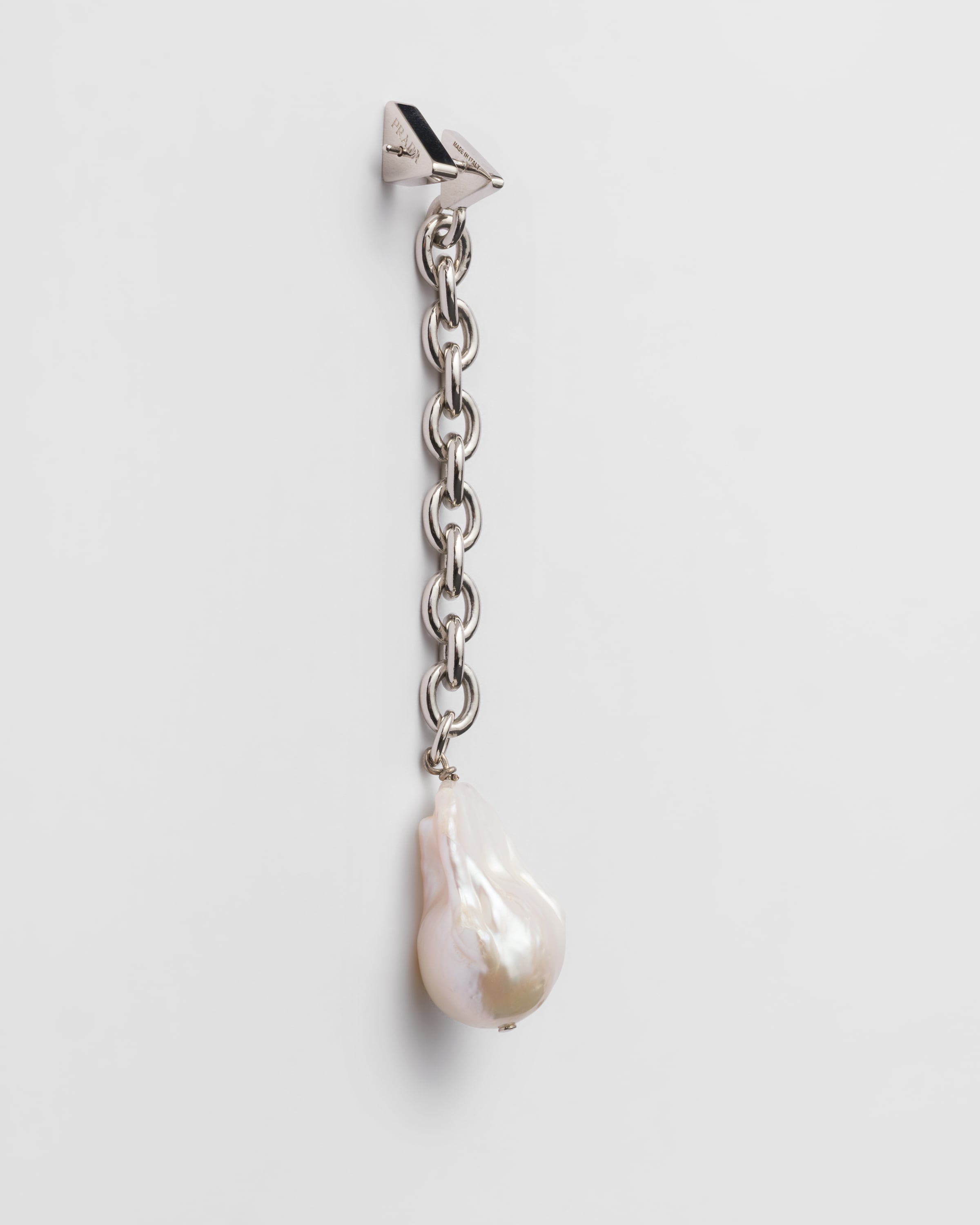 Серьги из металла и жемчуга Prada, сталь/жемчуг