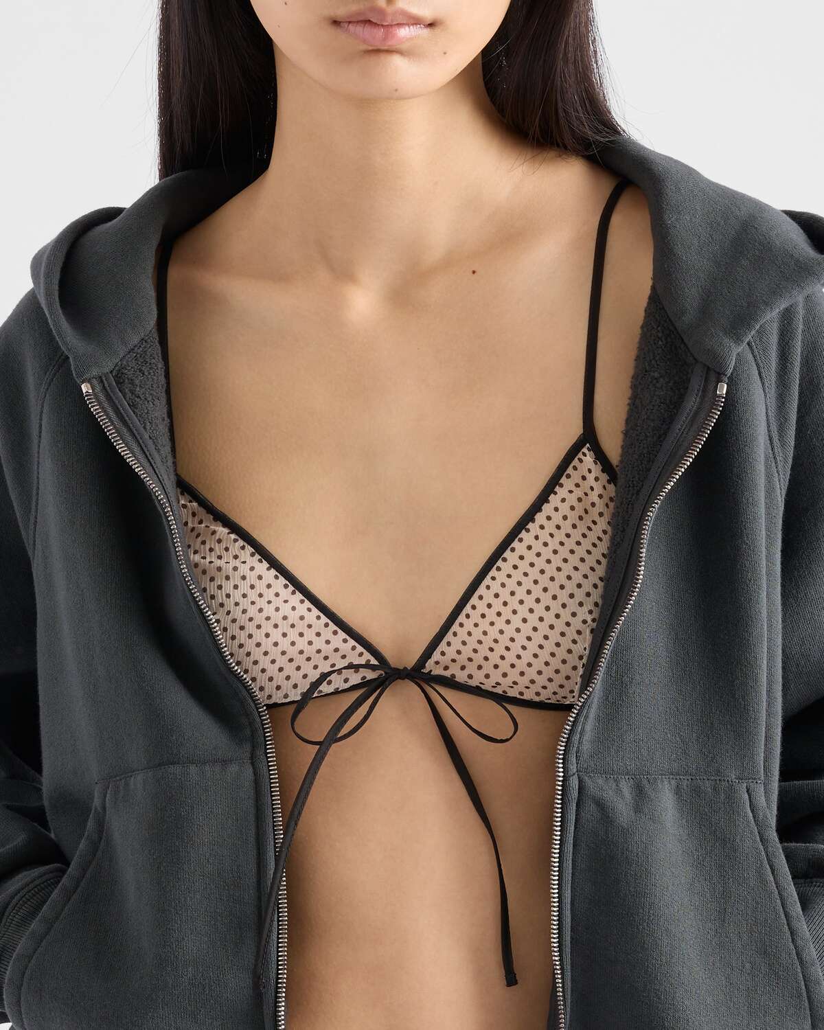 Бюстгальтер из шелкового шифона в горошек Prada, камео