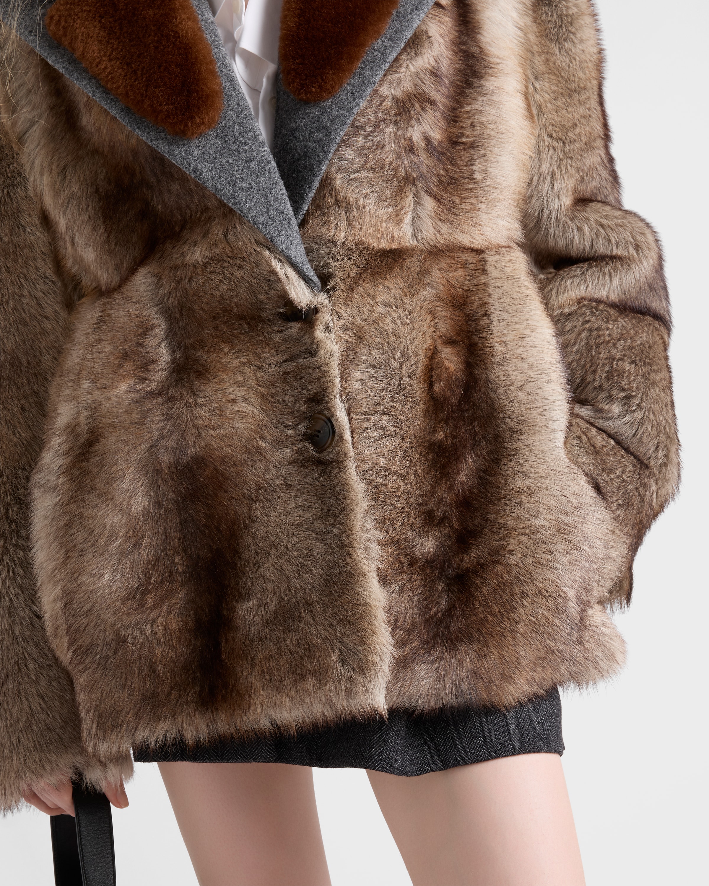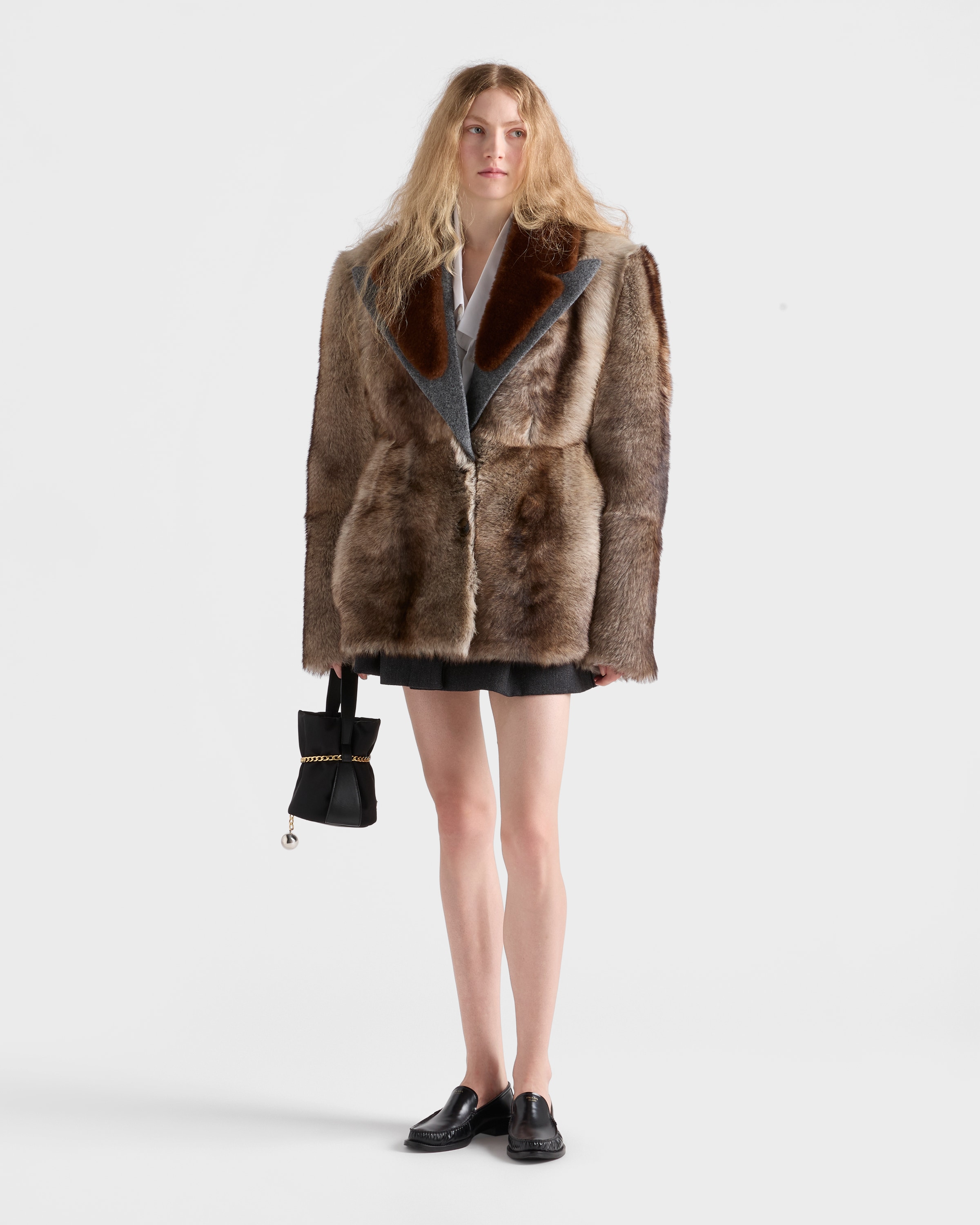 Дубленка и тканевое пальто Prada, глиняно-серый