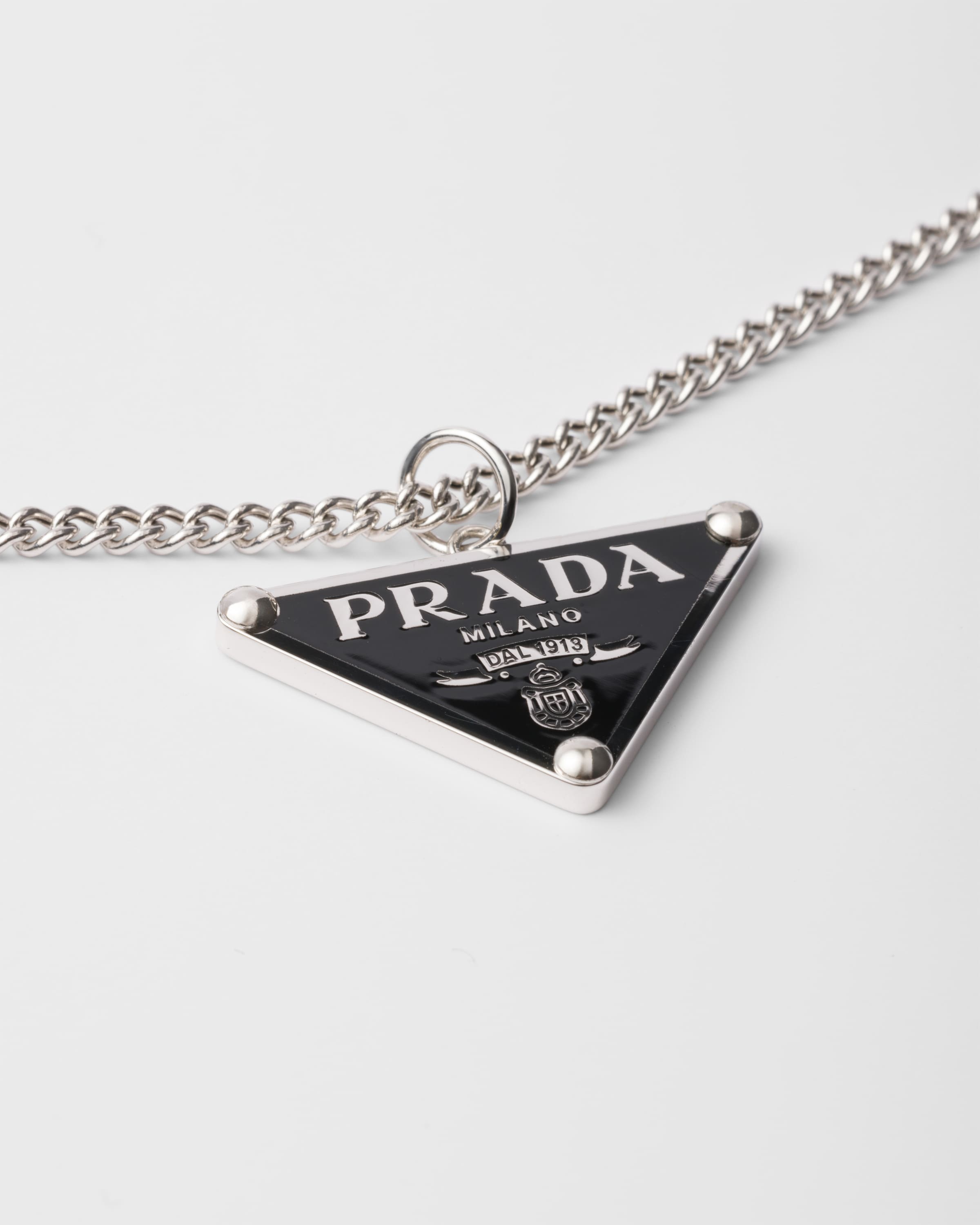 Серебряное ожерелье с подвеской Prada, черный