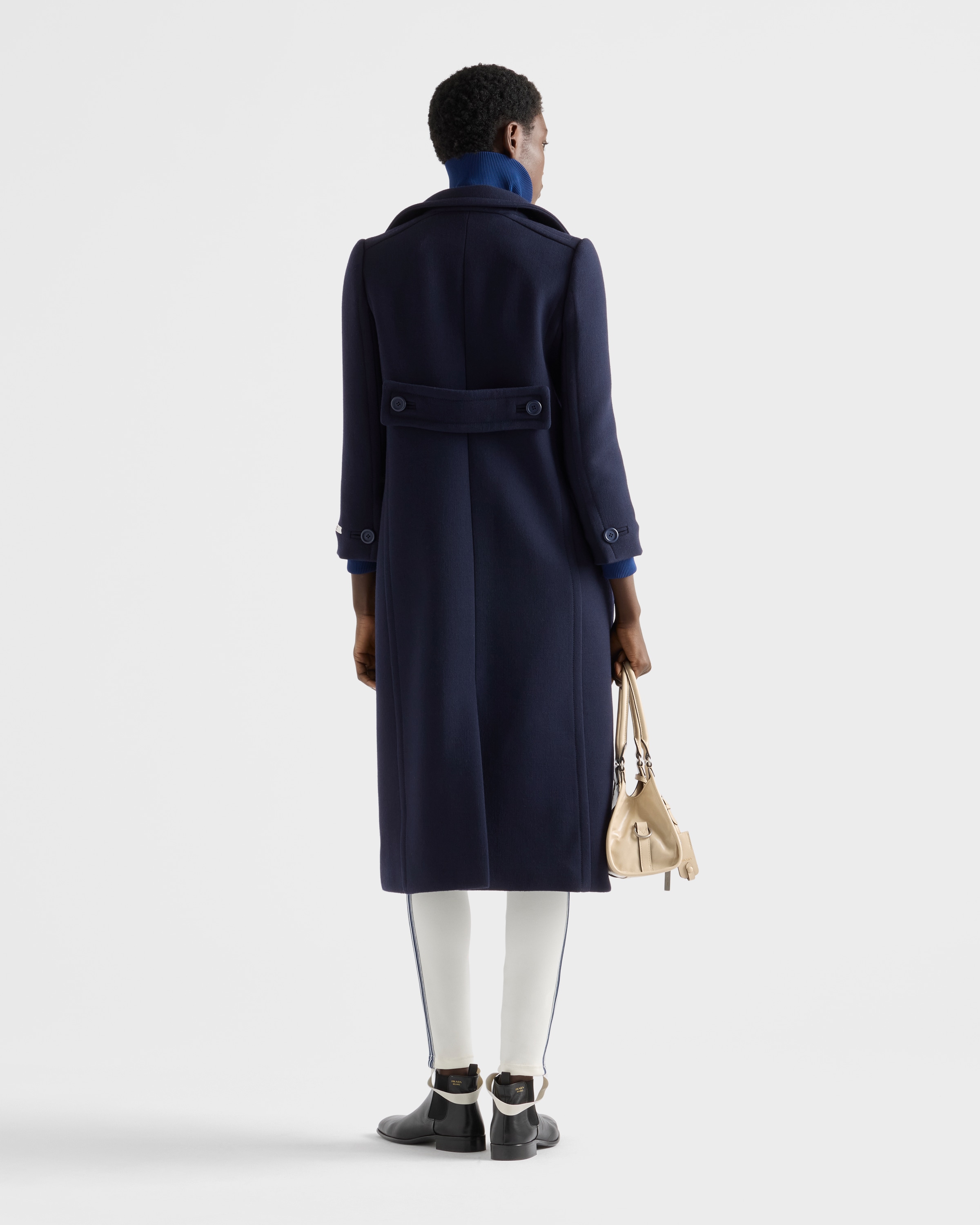 Однобортное пальто из ткани натте Prada, темно-синий 501 616₽
