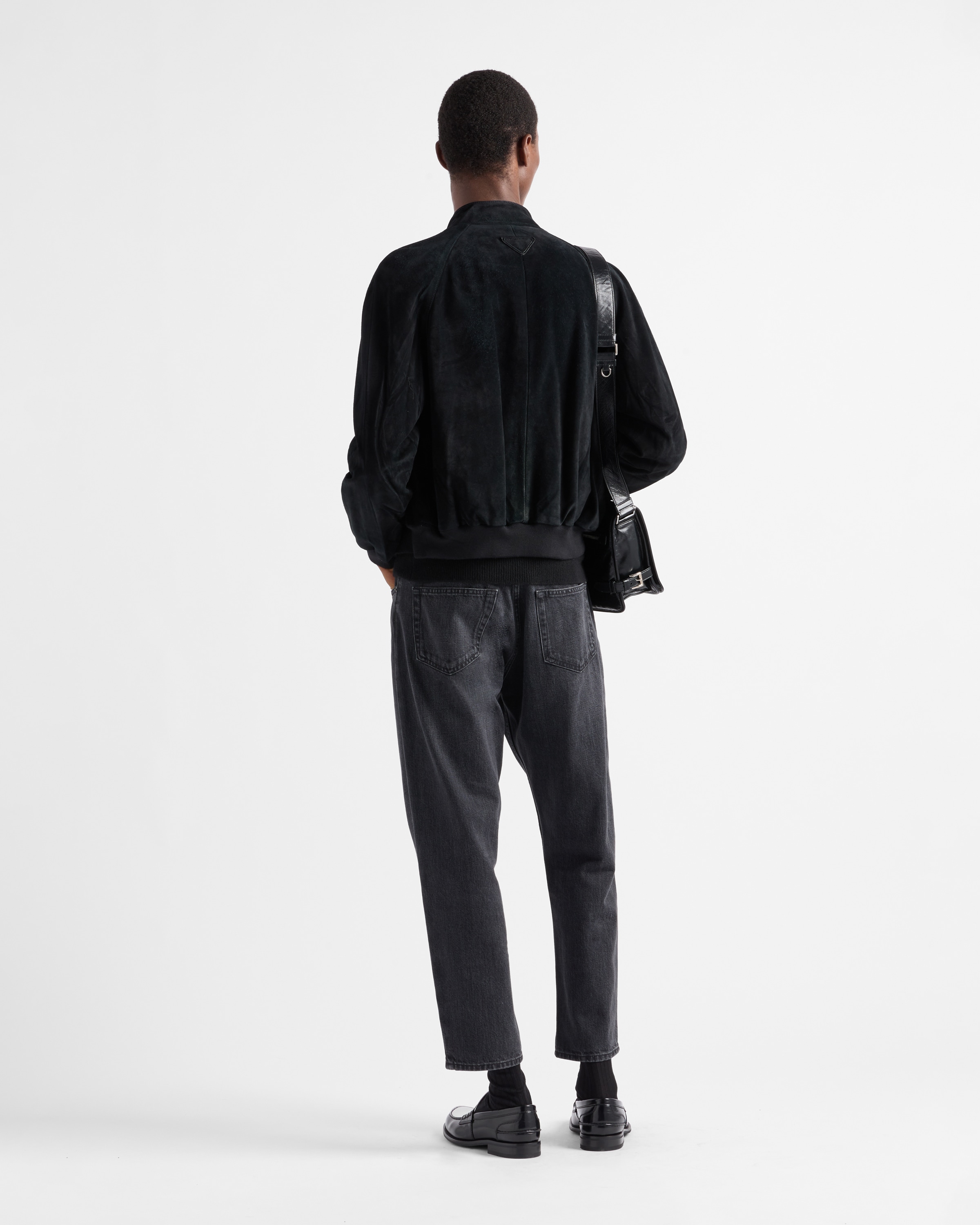 Замшевая бомбер-куртка Prada, черный