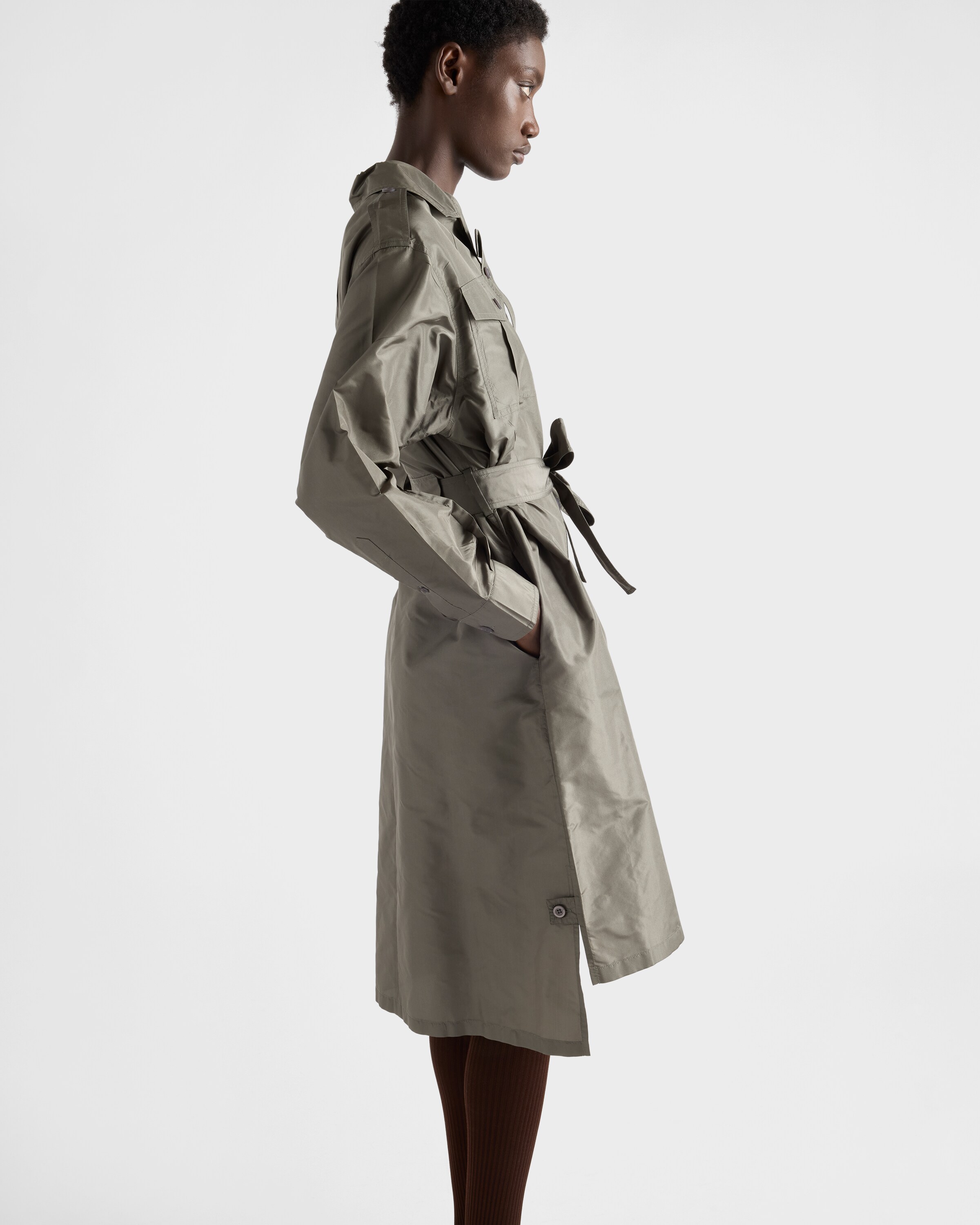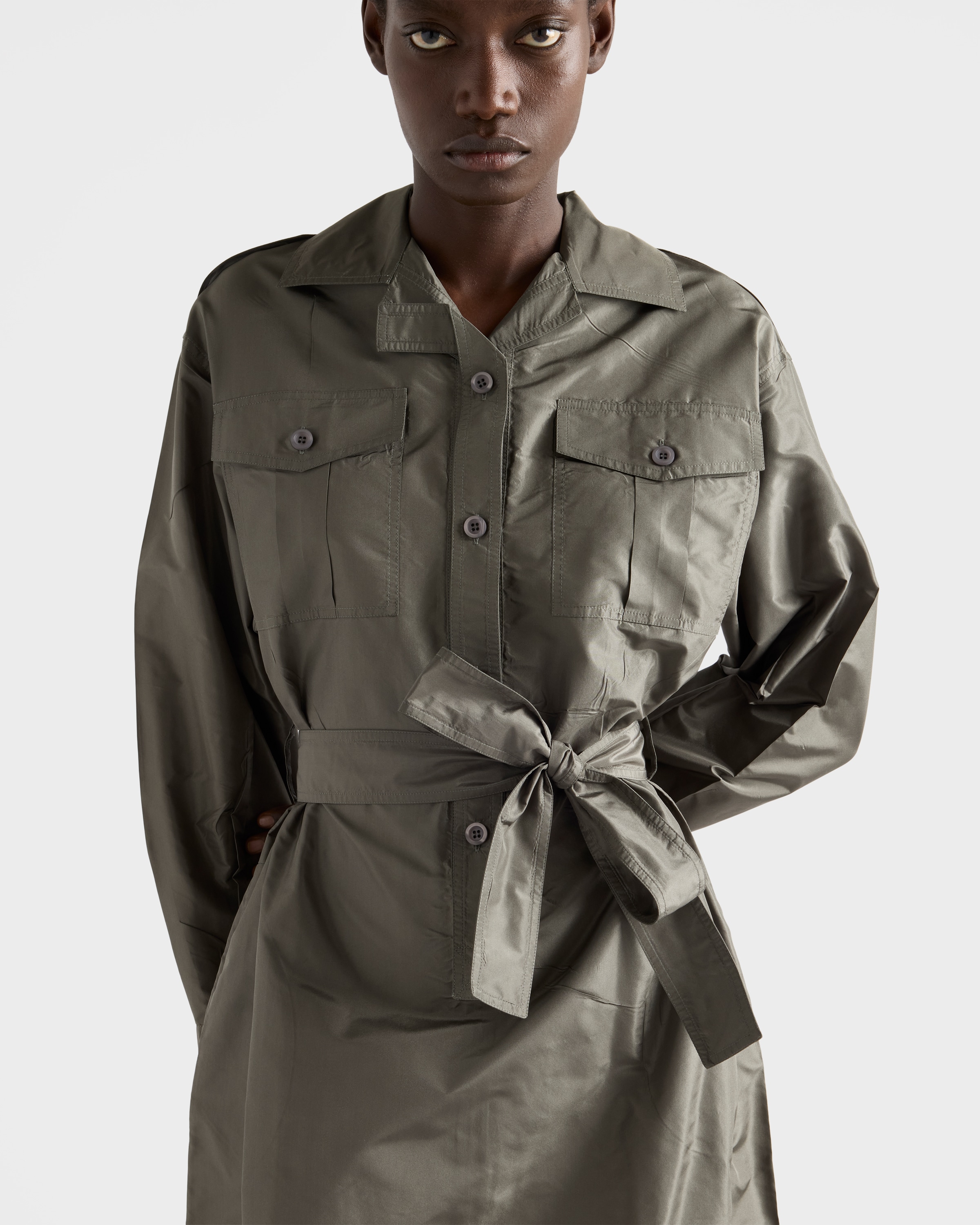 Платье из тафты Prada, камуфляжный зеленый