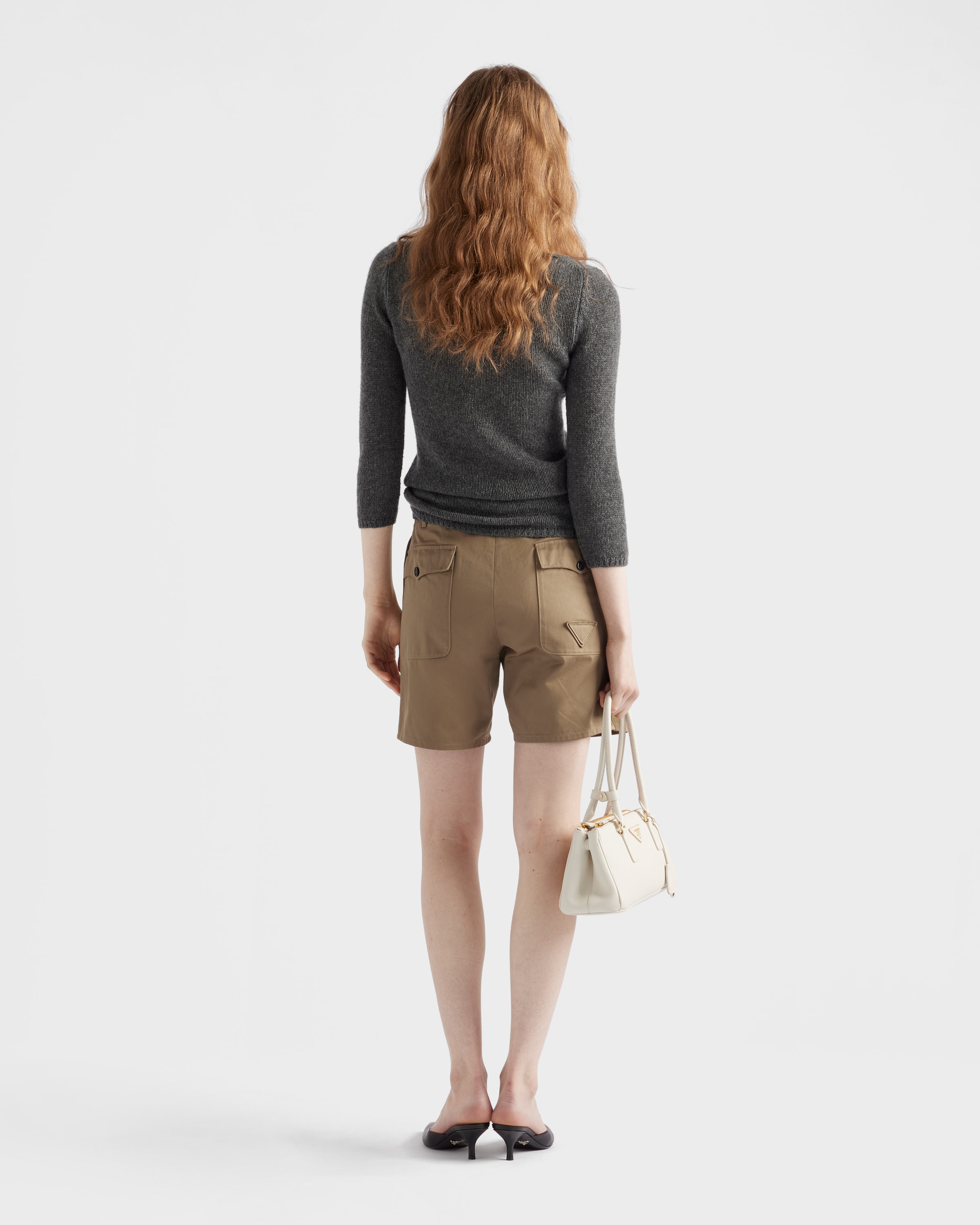 Выстиранные бермуды-чино Prada, глиняно-серый 107 635₽