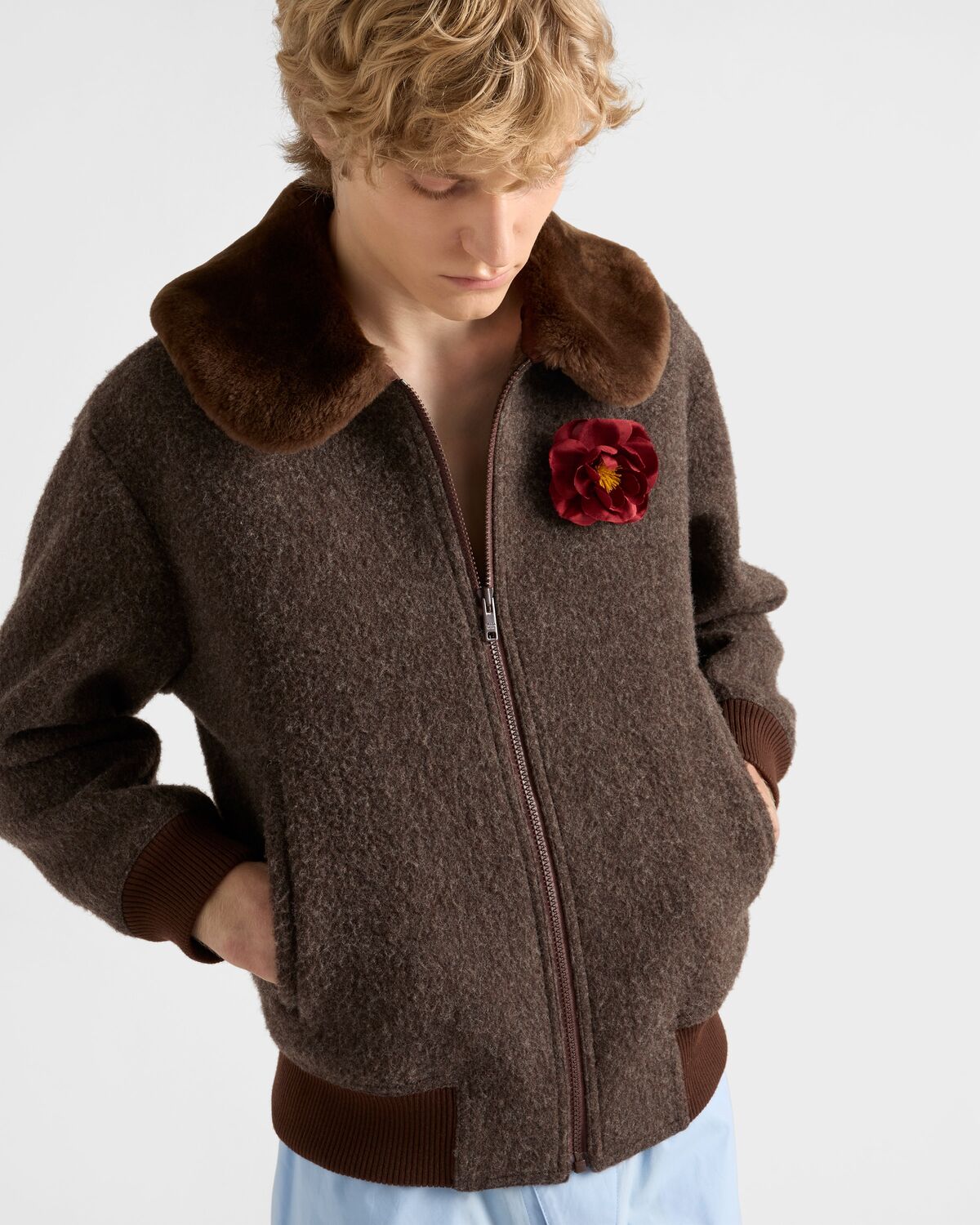 Шерстяной блузон с воротником из овчины Prada, эбеновый