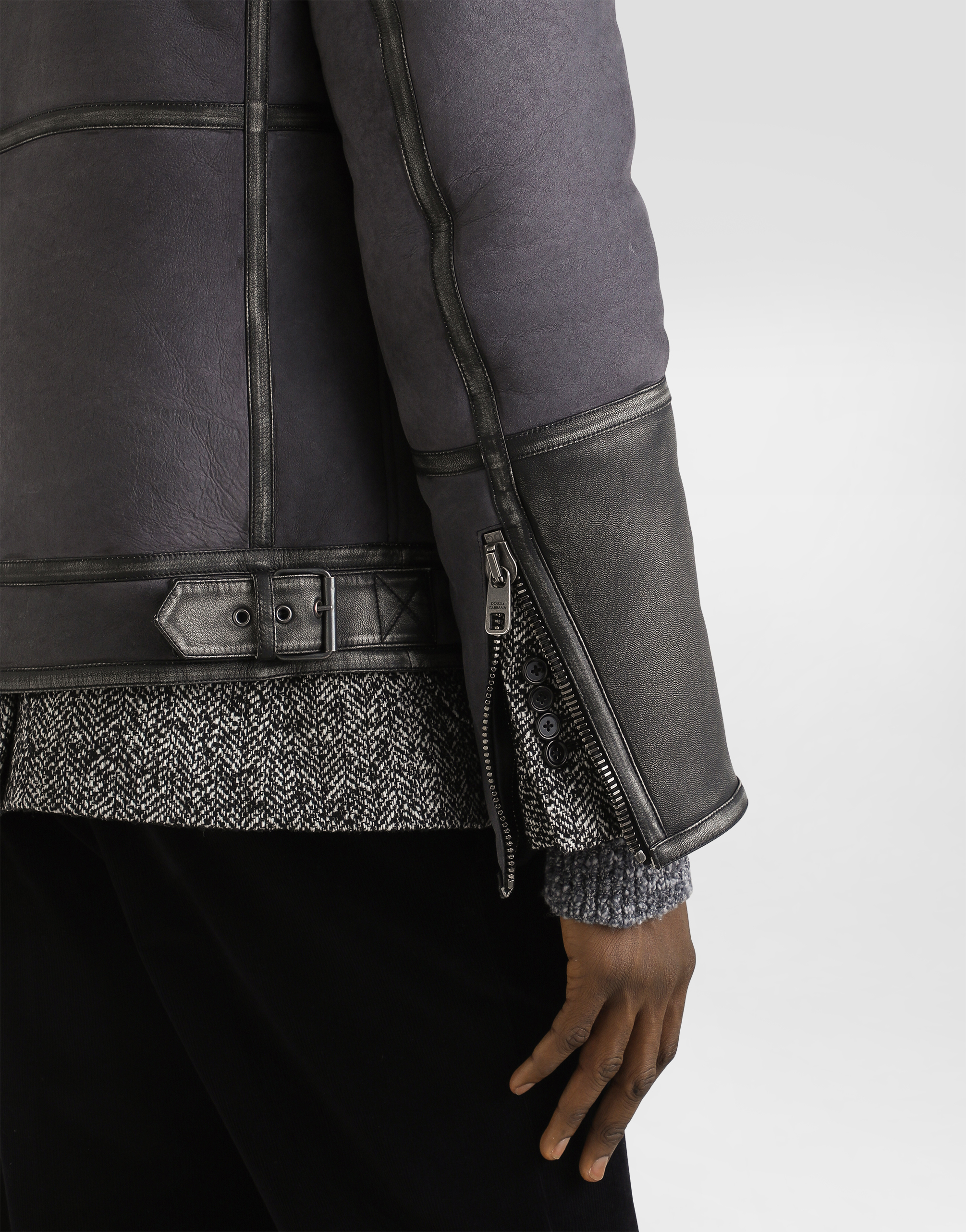 Бомбер из овчины с кожаными деталями: