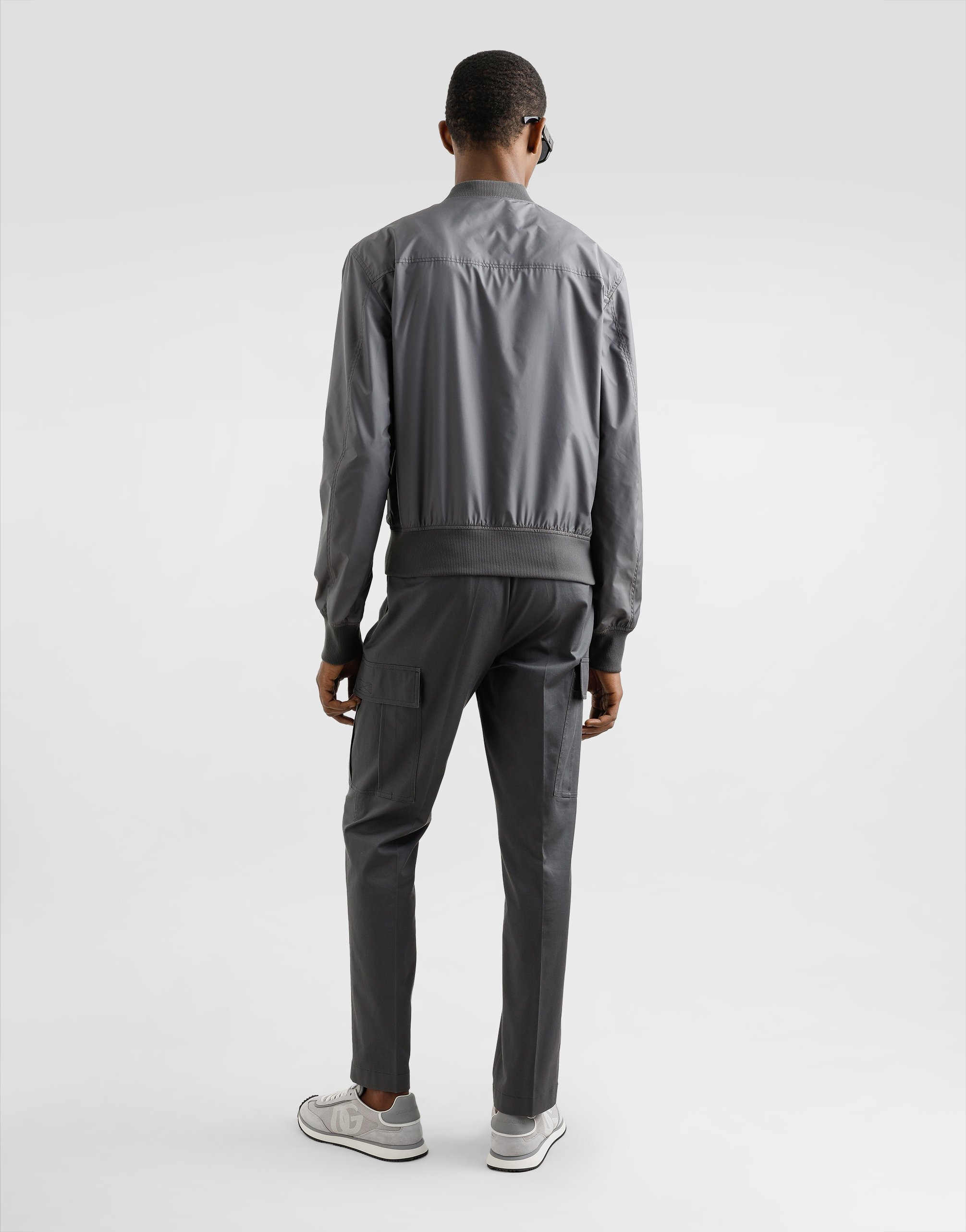 Бомбер из технической ткани с резиновым ярлыком и логотипом Dolce & Gabbana: • Серый • Застежка-молния спереди • Наружные карманы на молнии • Воротник, низ и рукава из эластичного трикотажа • Без подкладки • Длина изделия - 63 см от заднего шва воротника для размера IT 48 • Сделано в Италии