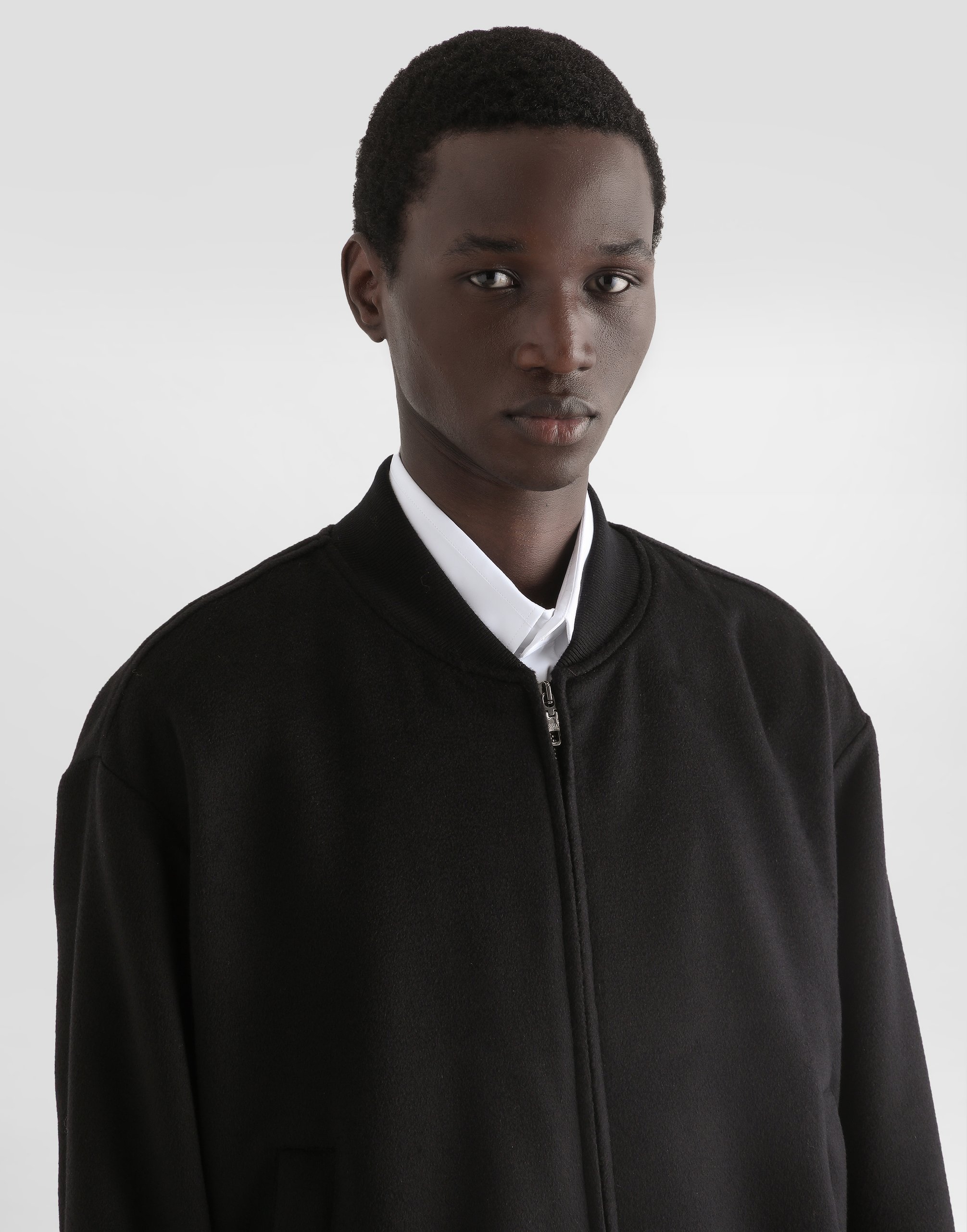 Эта черная кашемировая куртка - воплощение сдержанной роскоши и функциональности, идеально подходит для тех, кто ищет элегантность и комфорт в одной вещи.