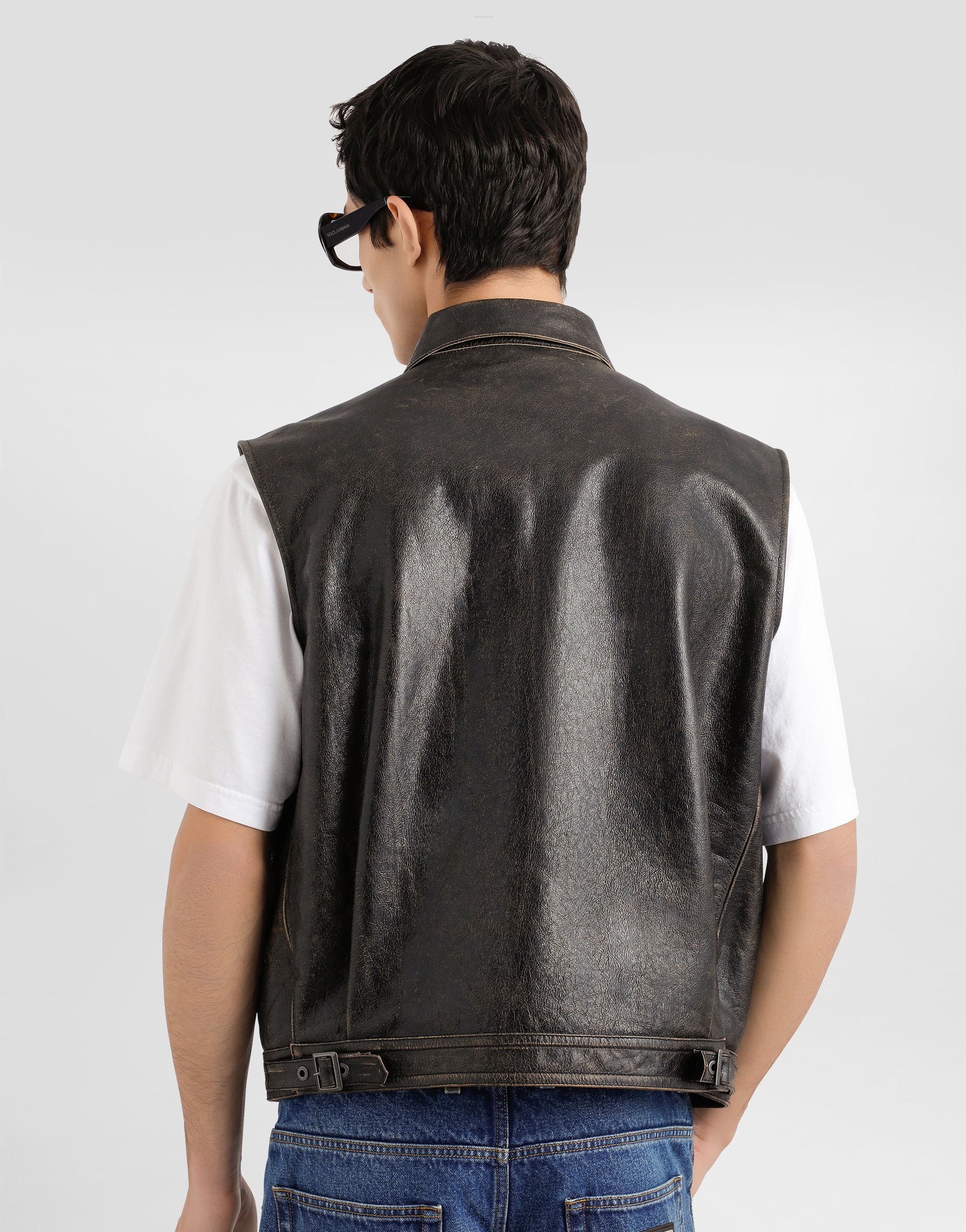 Эта черная кожаная куртка - универсальная и модная вещь, идеально подходящая для того, чтобы добавить элемент повседневной элегантности в ваш гардероб.