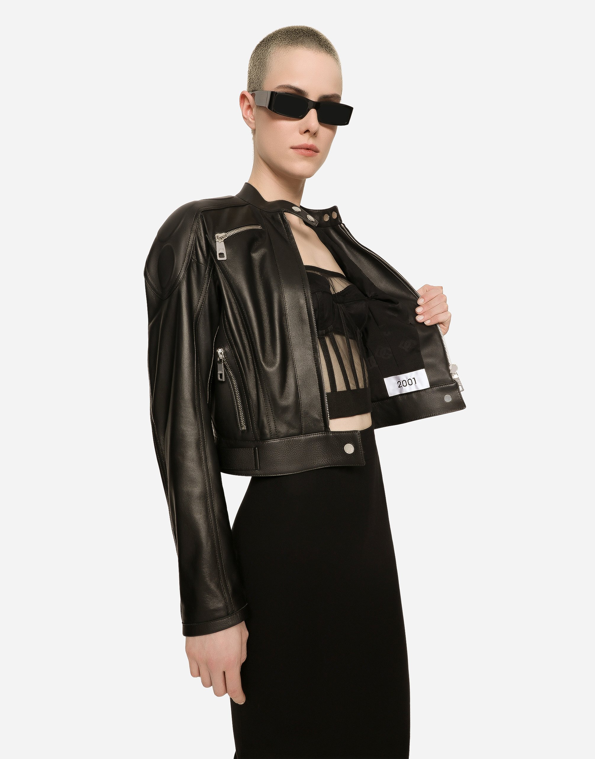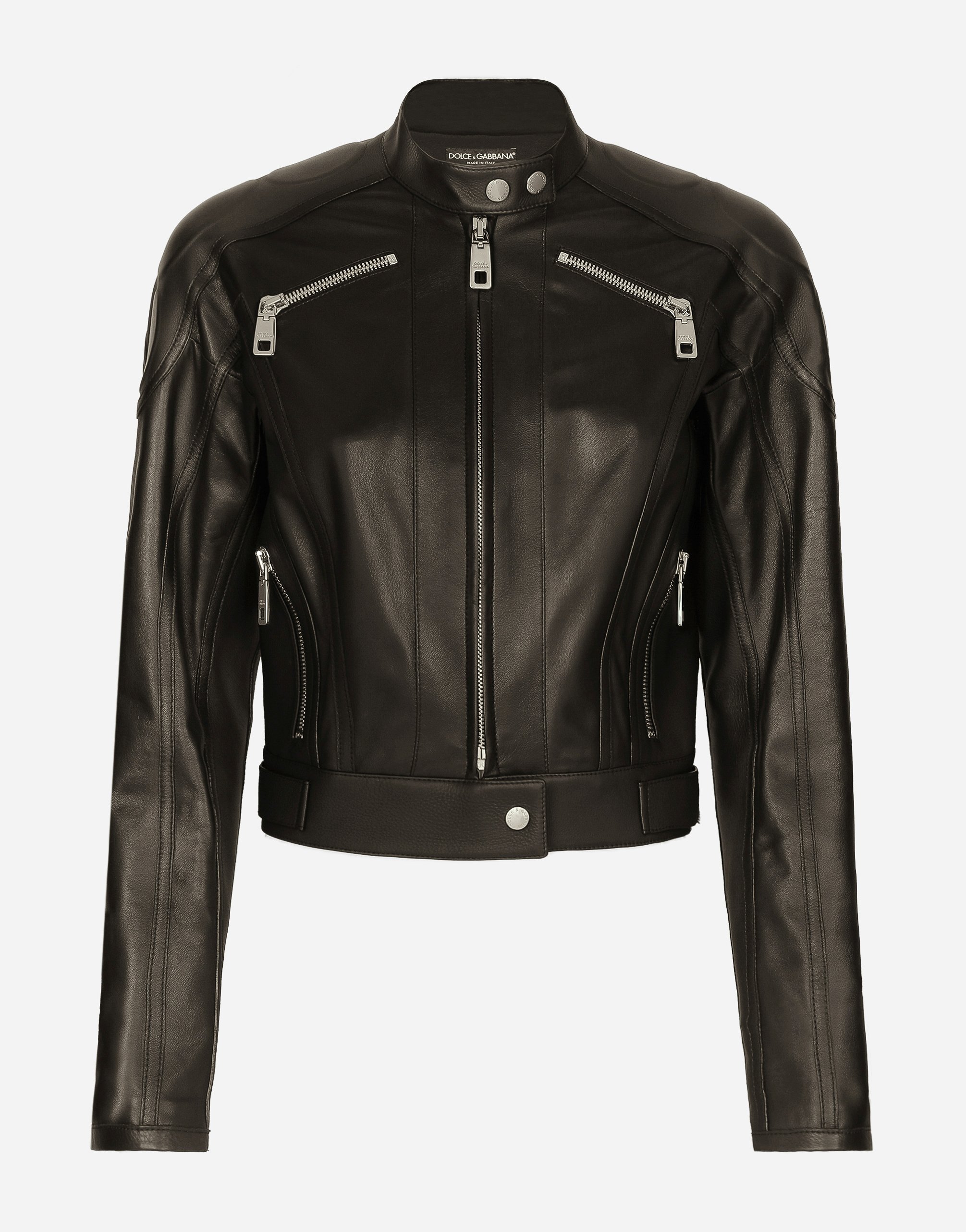 Куртка-байкер из наппы: • Черный цвет • Воротник-стойка • Длинные рукава с манжетами на молниях • Слегка усиленные локти и плечи • Фирменная подкладка из стрейч-сатина жаккард • Застежка на молнию спереди и фирменную пуговицу • Длина изделия от середины спины - 46,50 см для размера IT 40 • Рост модели - 175 см, на ней надет размер IT 40 • Сделано в Италии