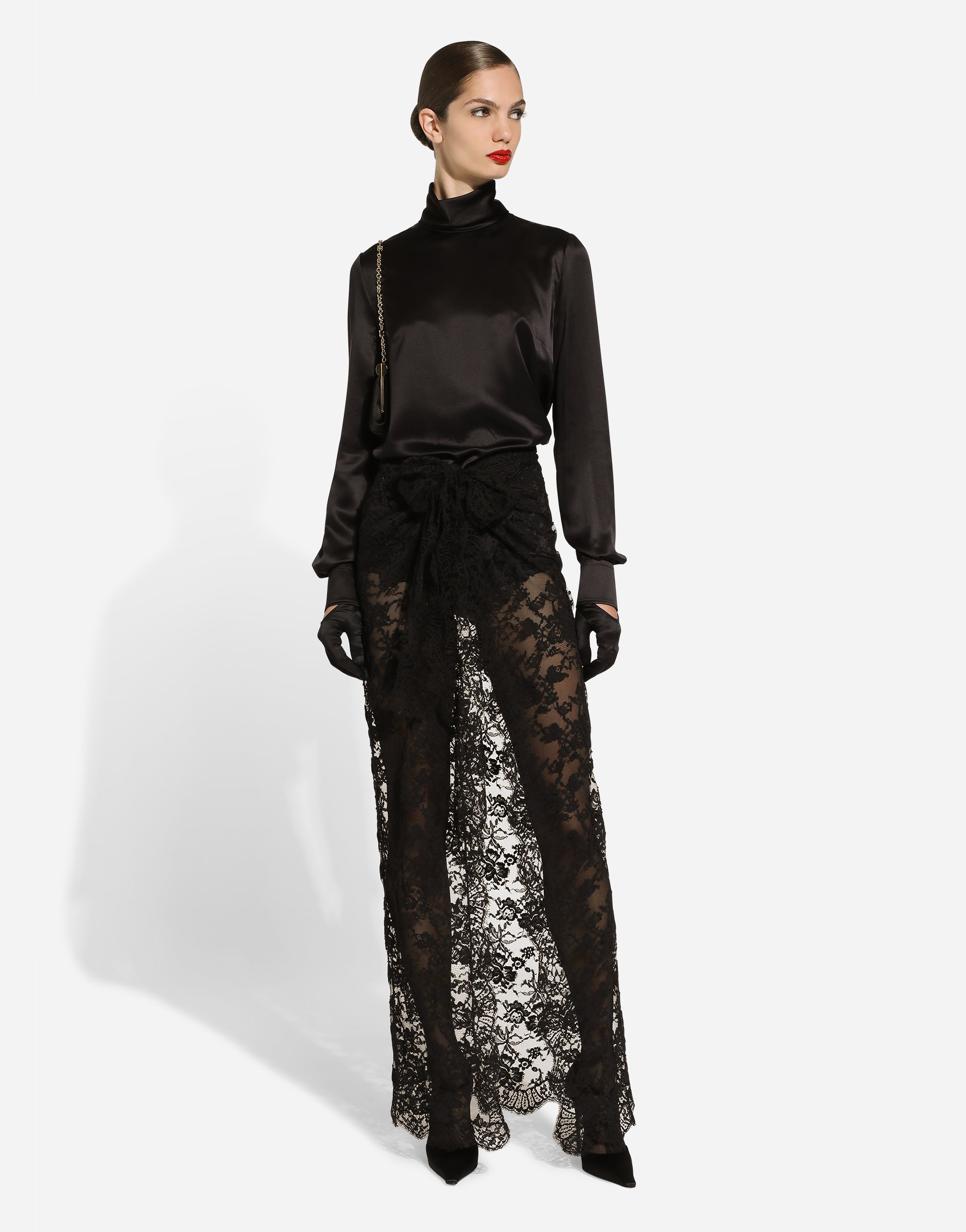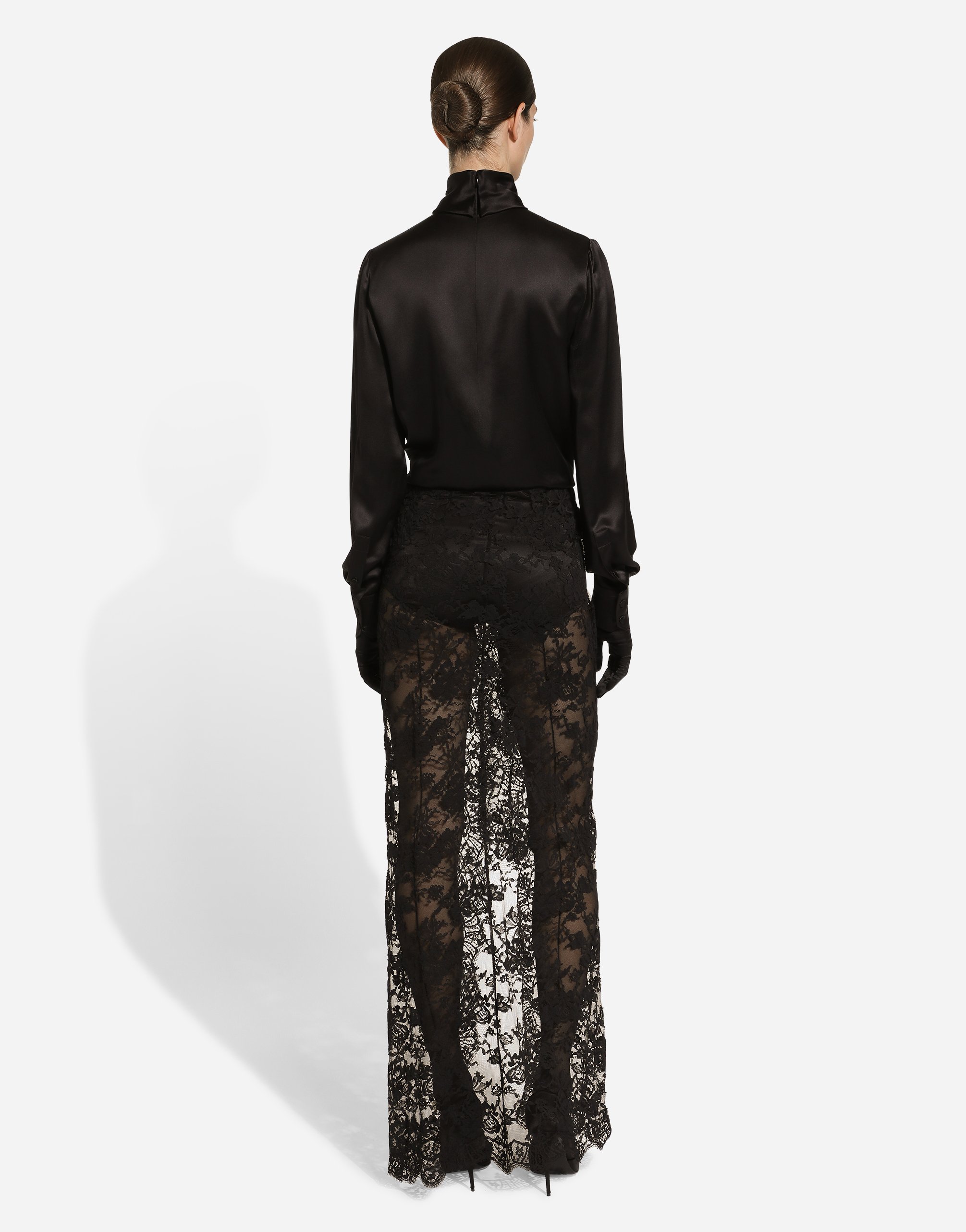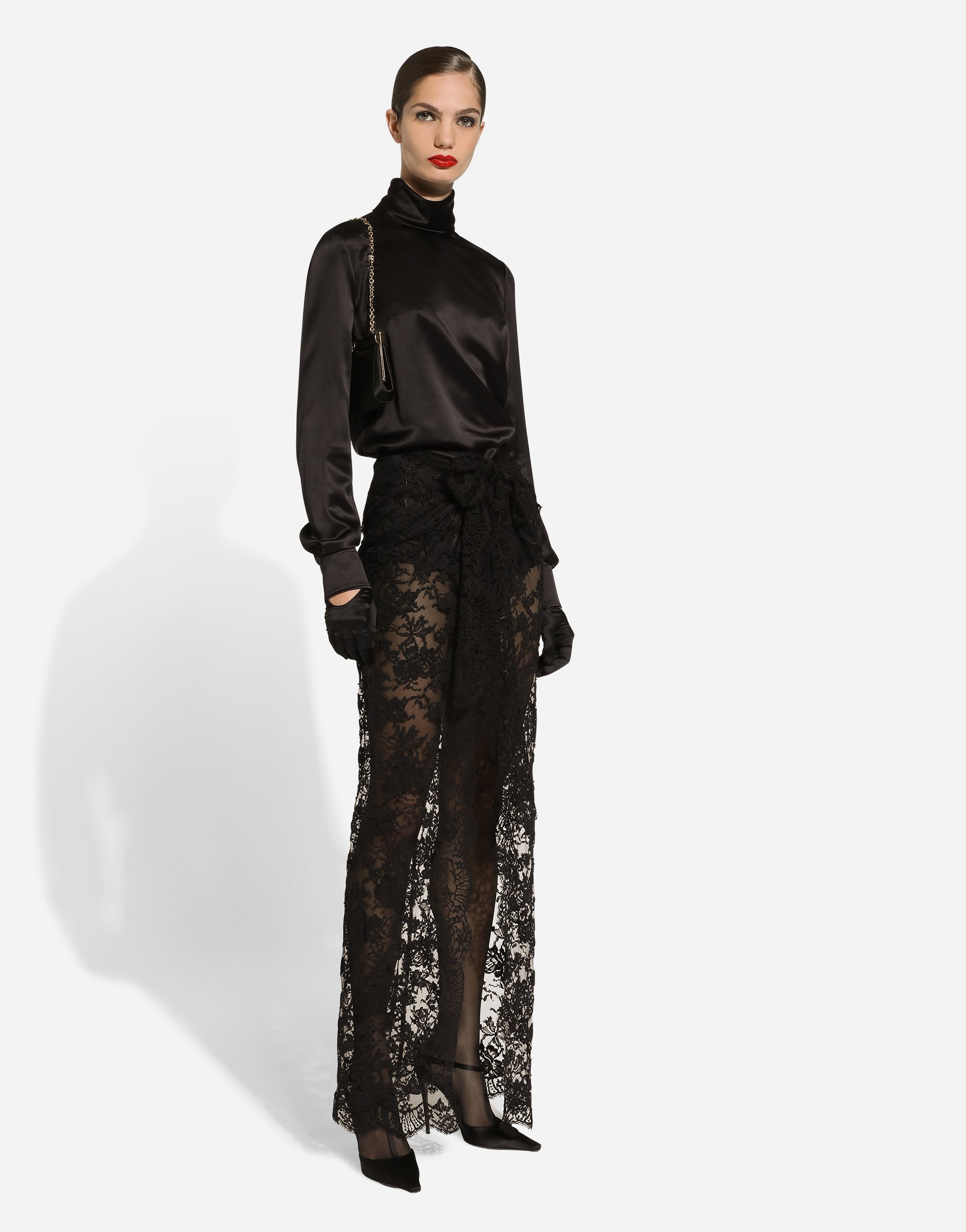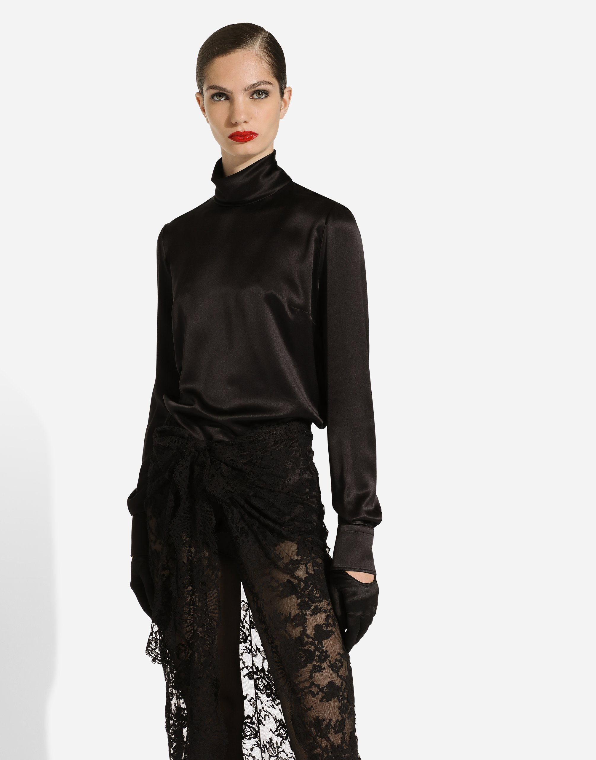 Блузка из шелкового сатина Dolce & Gabbana, черный