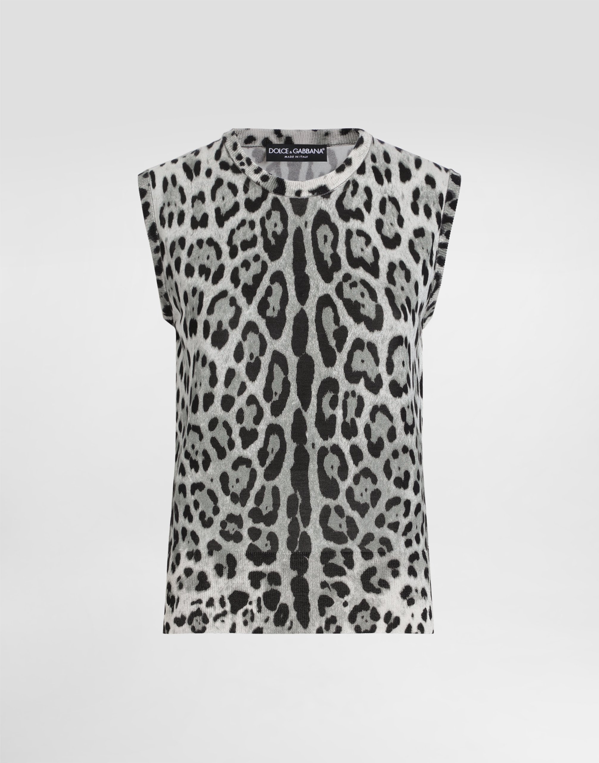 Шелковая майка с леопардовым принтом Dolce & Gabbana, принт