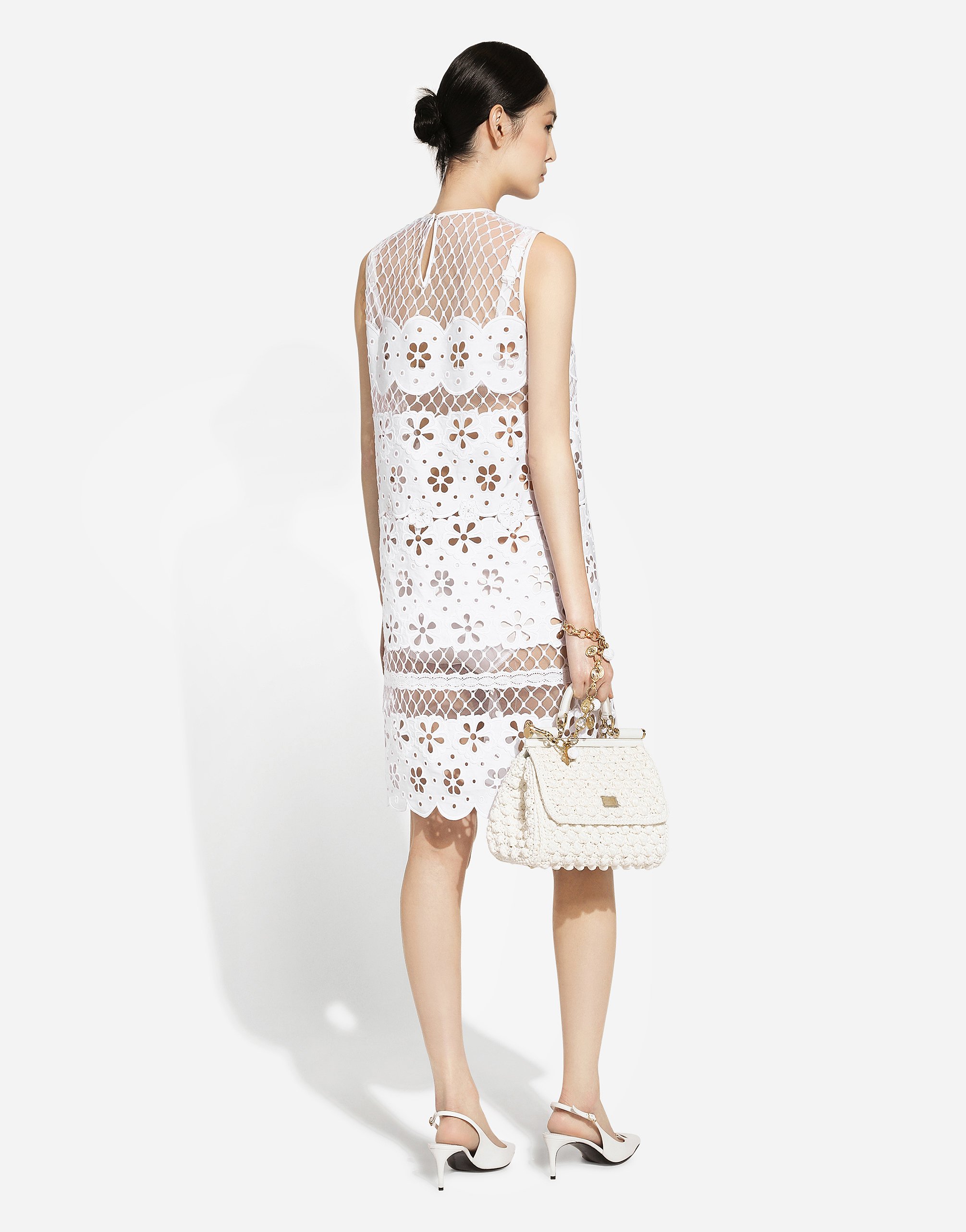 Короткое хлопковое платье с вырезами Dolce & Gabbana, белый