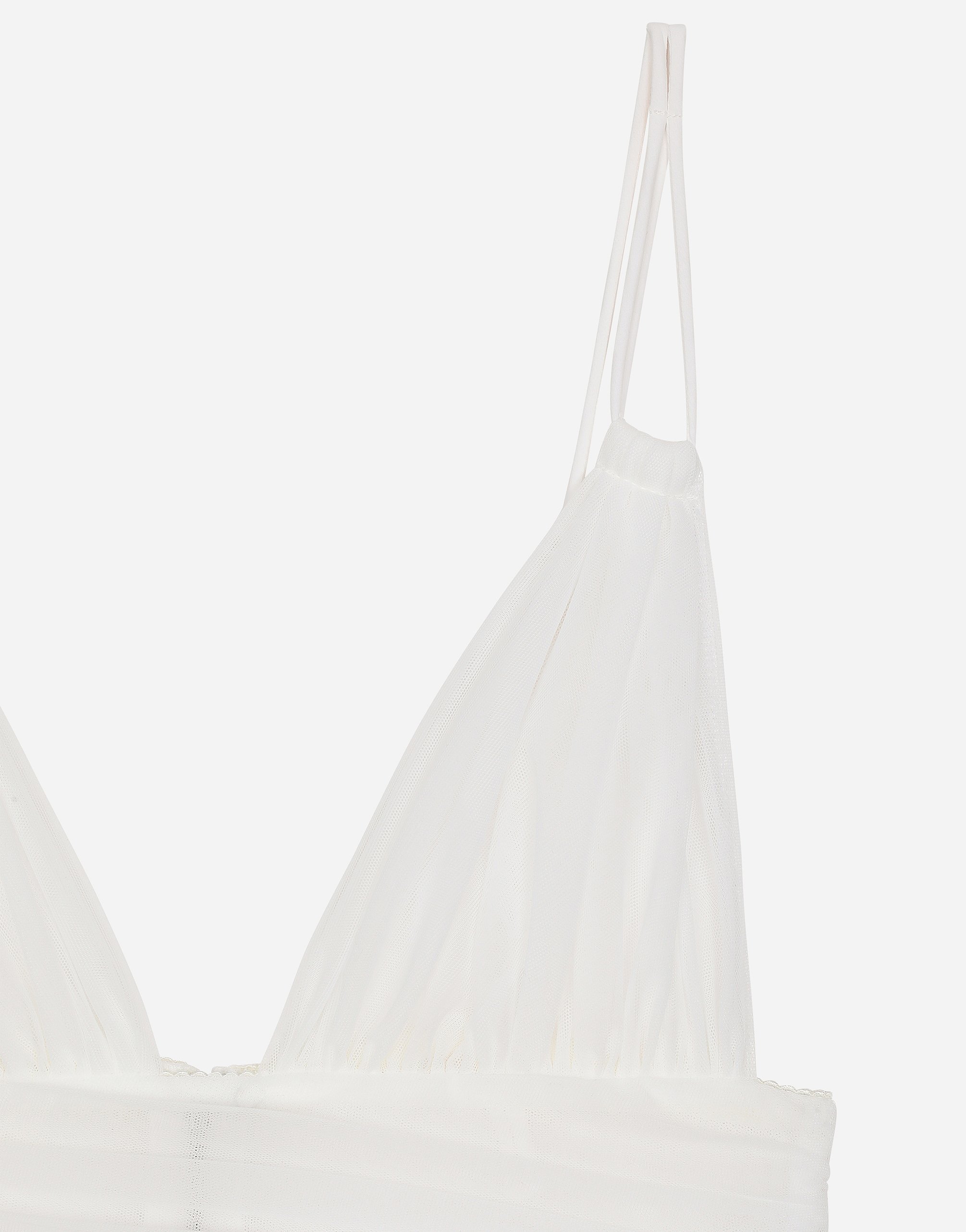 Платье миди из стрейчевого тюля с драпировкой: • Белый цвет • Вырез сердечком • Без рукавов, с бретельками • Подкладка из тюля • Задняя молния и застежка на крючок • Длина изделия от талии вниз - 90 см для размера IT 40 • Рост модели - 175 см, на ней размер IT 40 • Сделано в Италии