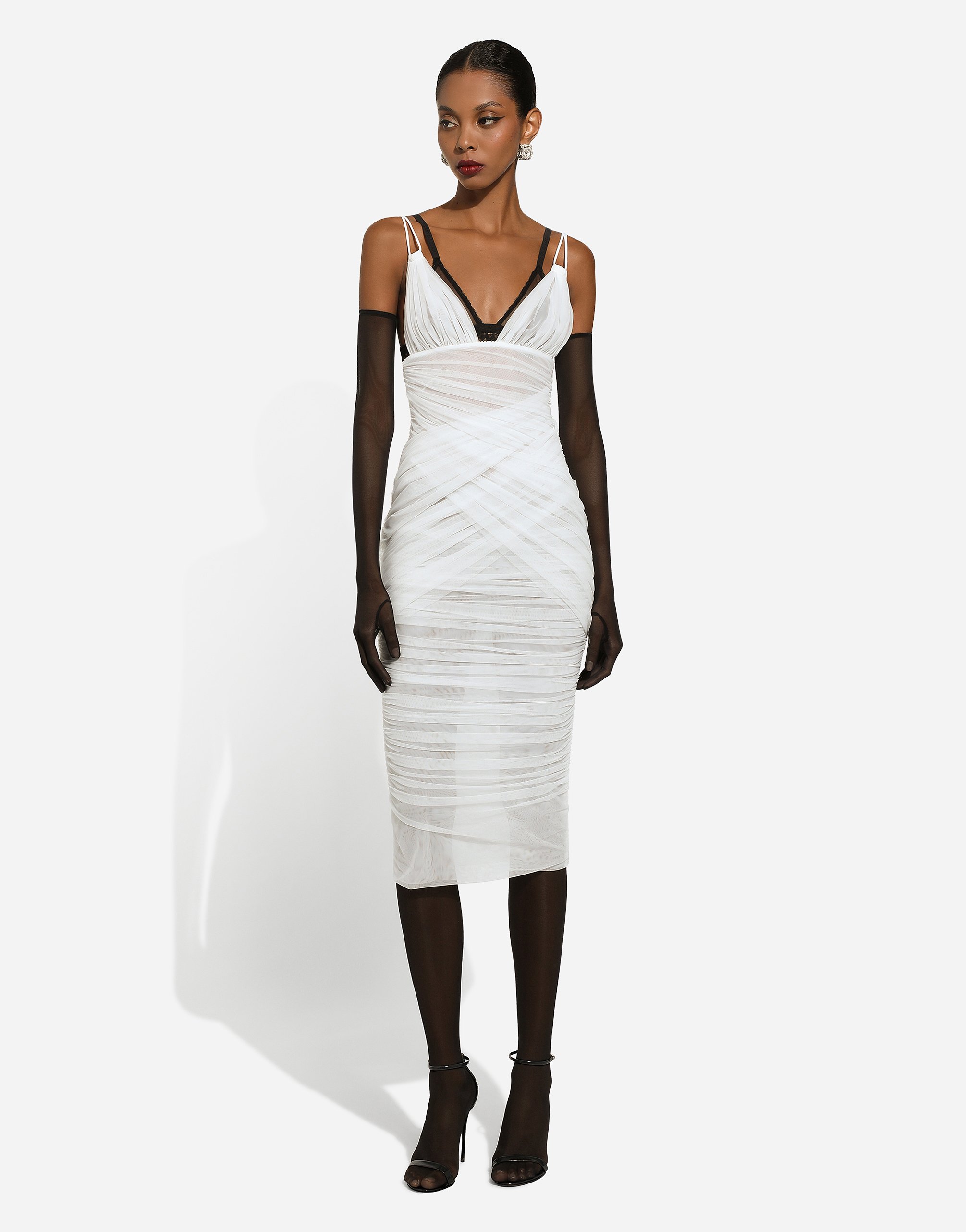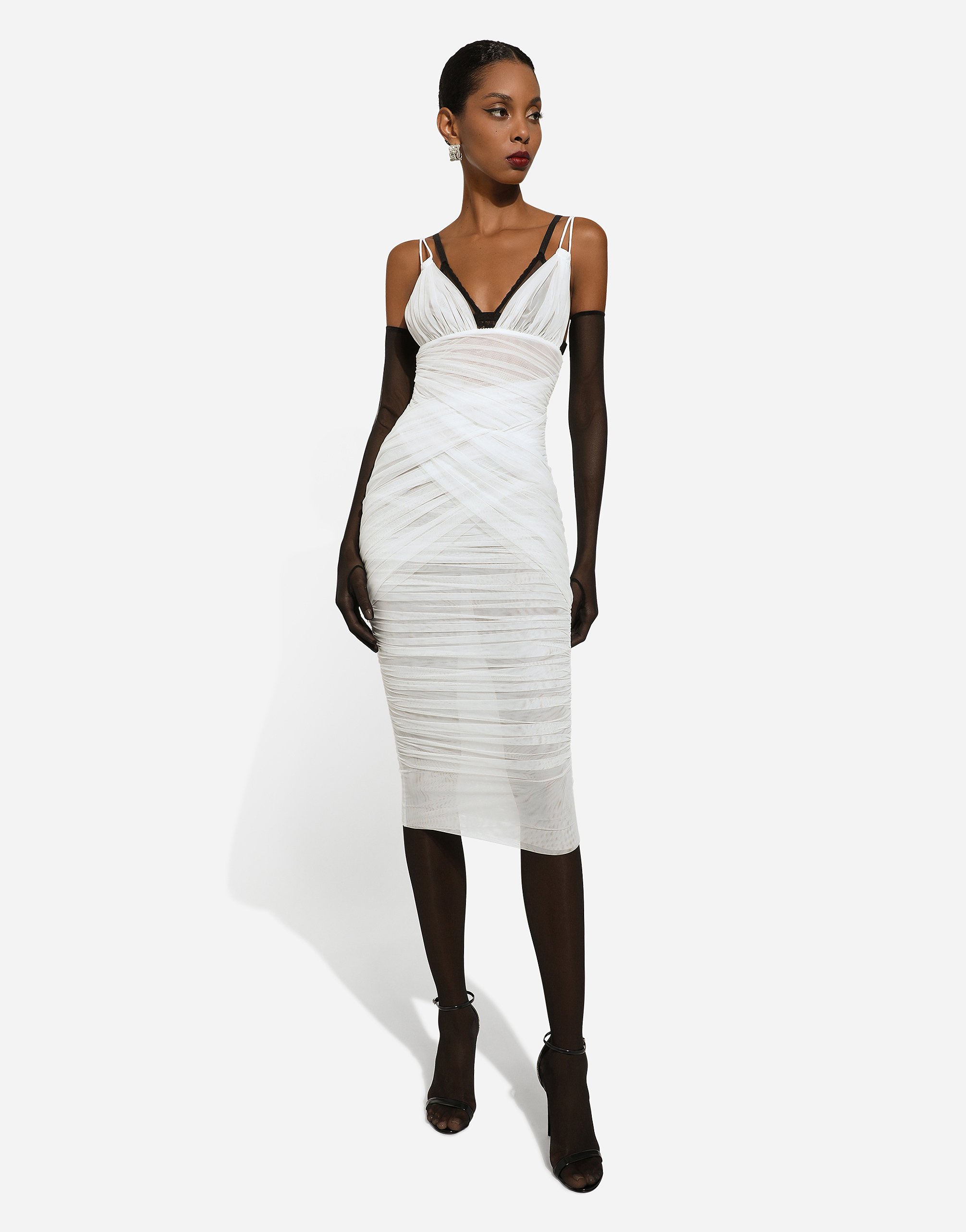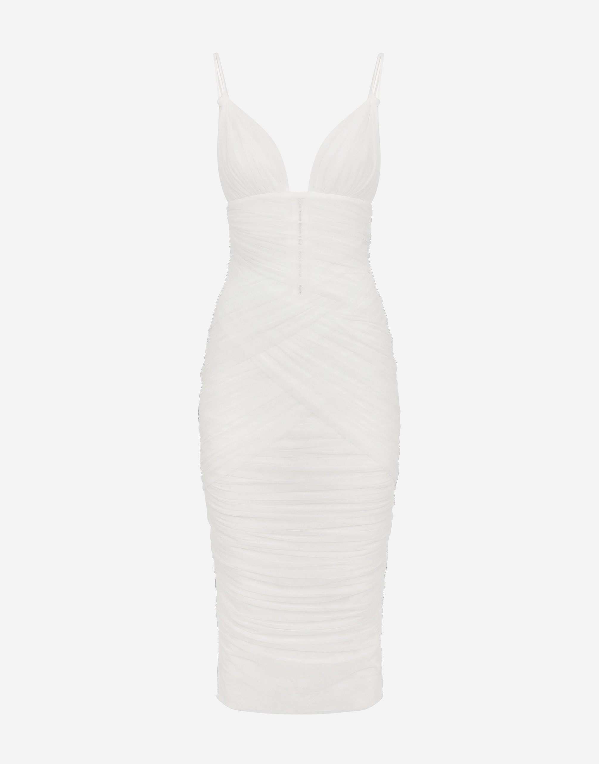 Платье миди из тюля с драпировкой Dolce & Gabbana, белый