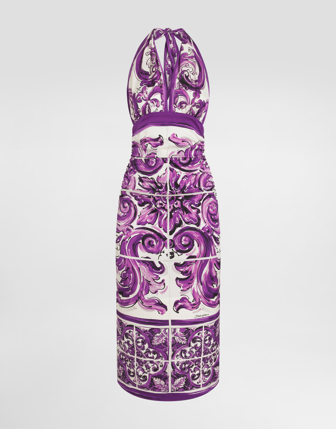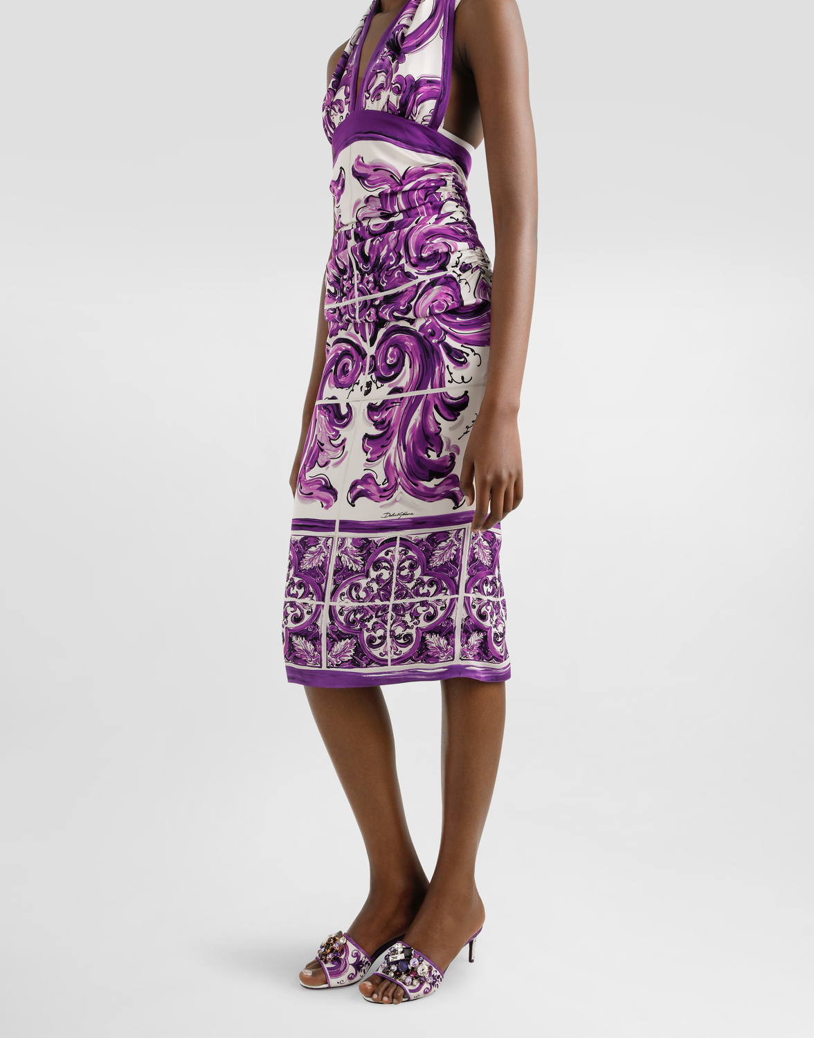 Платье из шармеза с принтом «майолика» Dolce & Gabbana, мультиколор