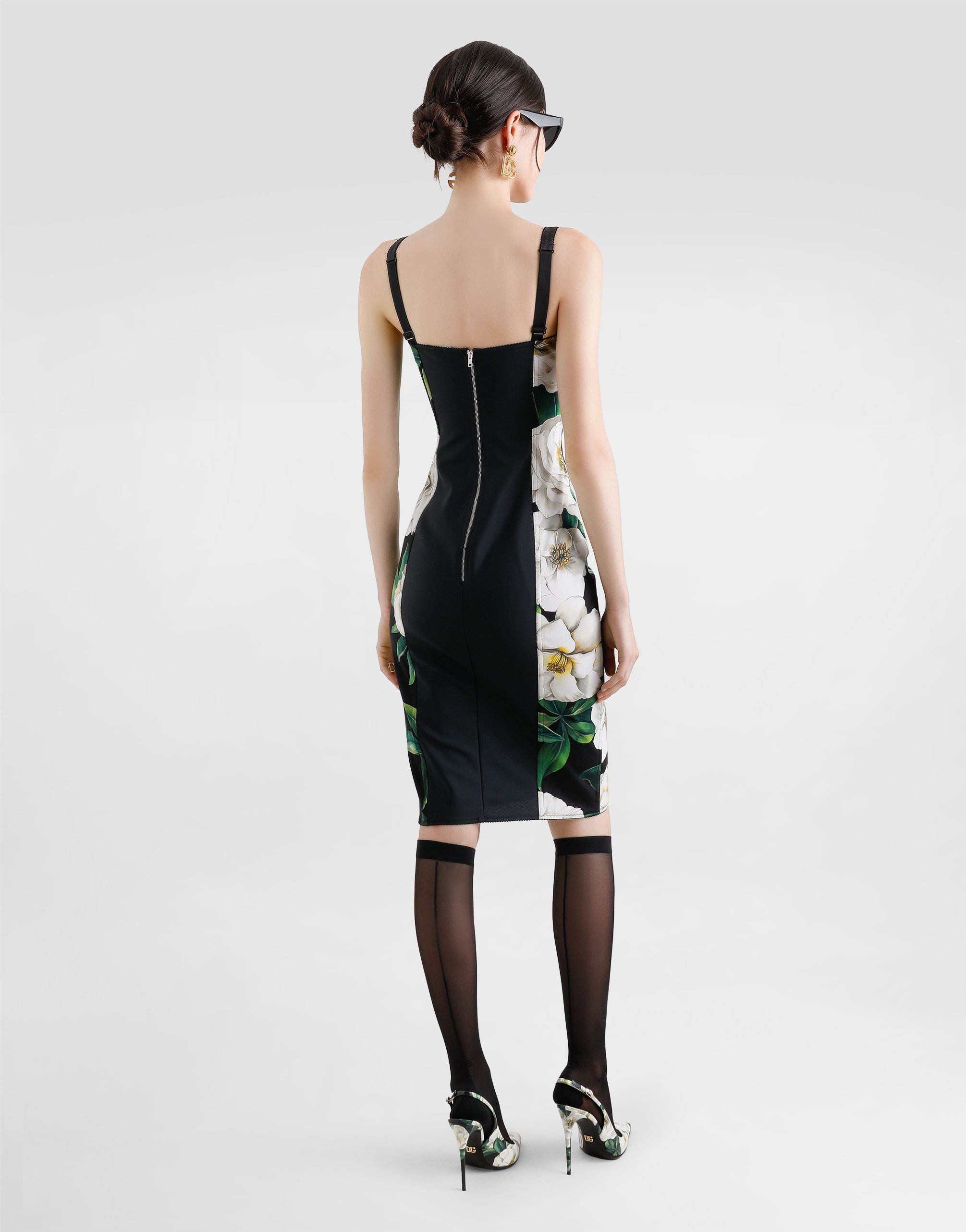 Миди-платье из эластичной маркизетты с принтом гардении Dolce & Gabbana, принт