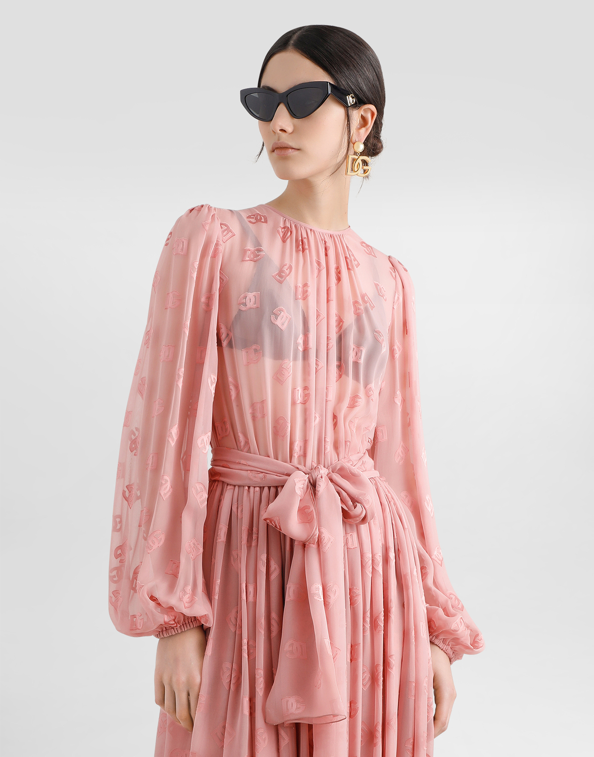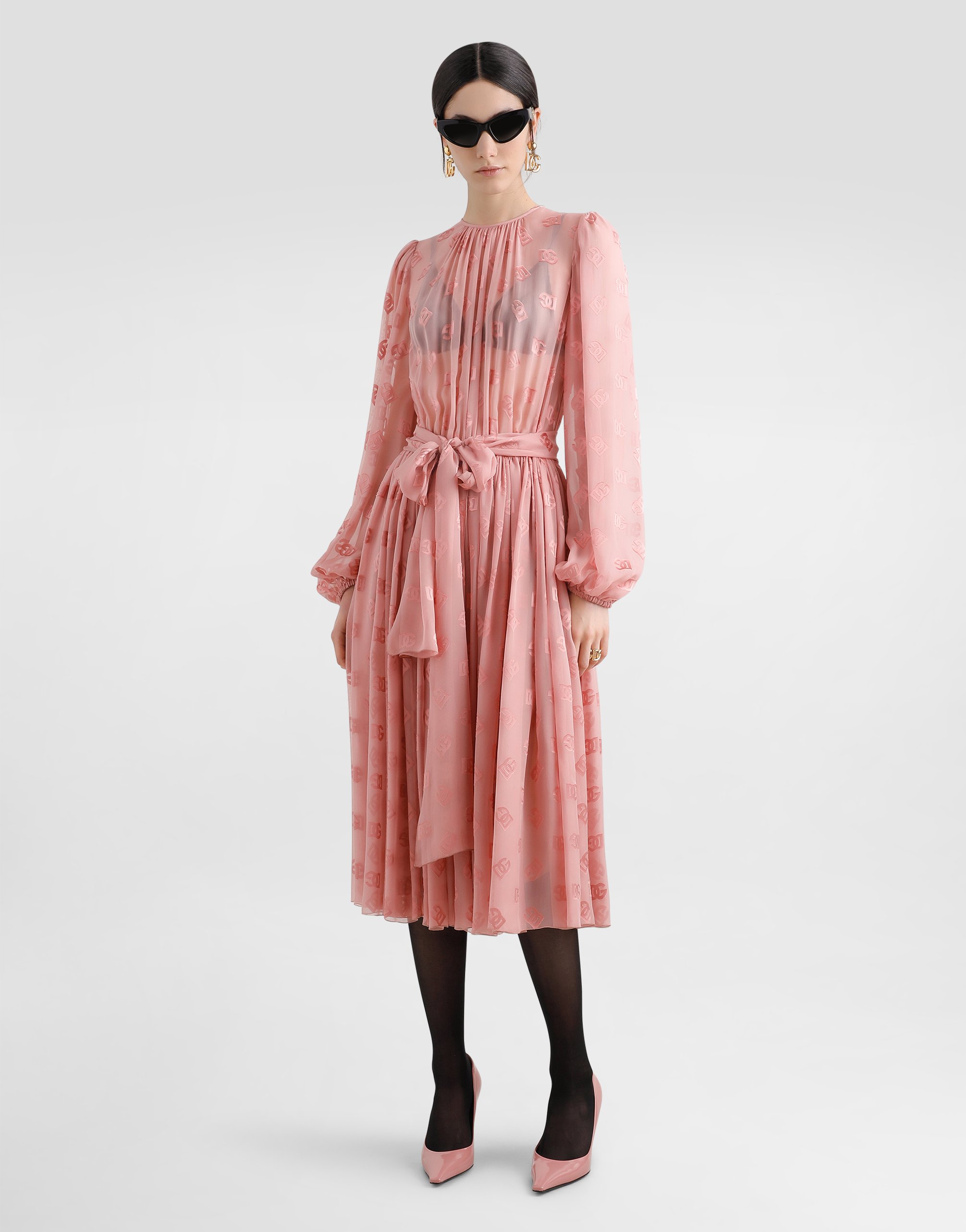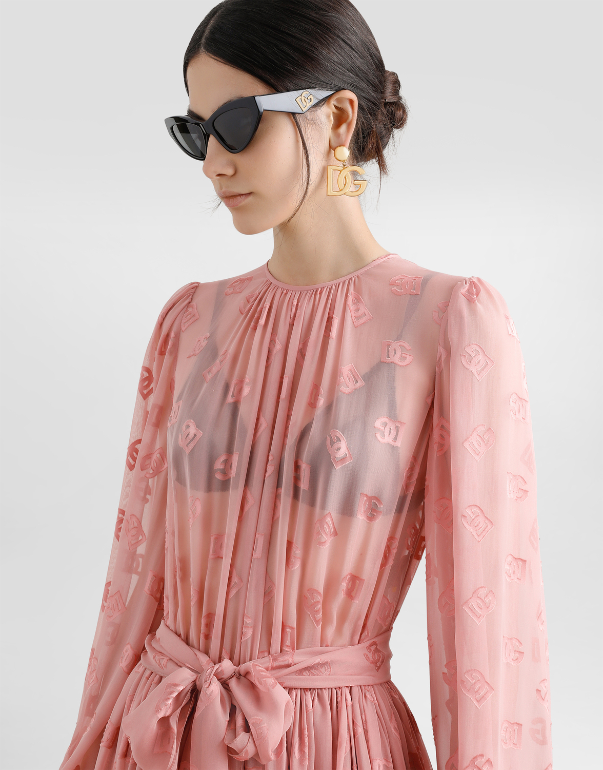 Женская коллекция DNA представляет новый облик женственности, воплощенный в оттенках розового кварца, балансирующих между прозрачностью и плотностью, легкостью и структурой, формальностью и чувственностью. Геометричные жакеты Dolce, жаккардовые пижамы и платья из цветочного брокада сочетаются с ультра-романтичными моделями. Принт DG становится культовым акцентом, а кружево кордонетто и отголоски сицилийского черного воплощают суть решительной, но романтичной женственности.