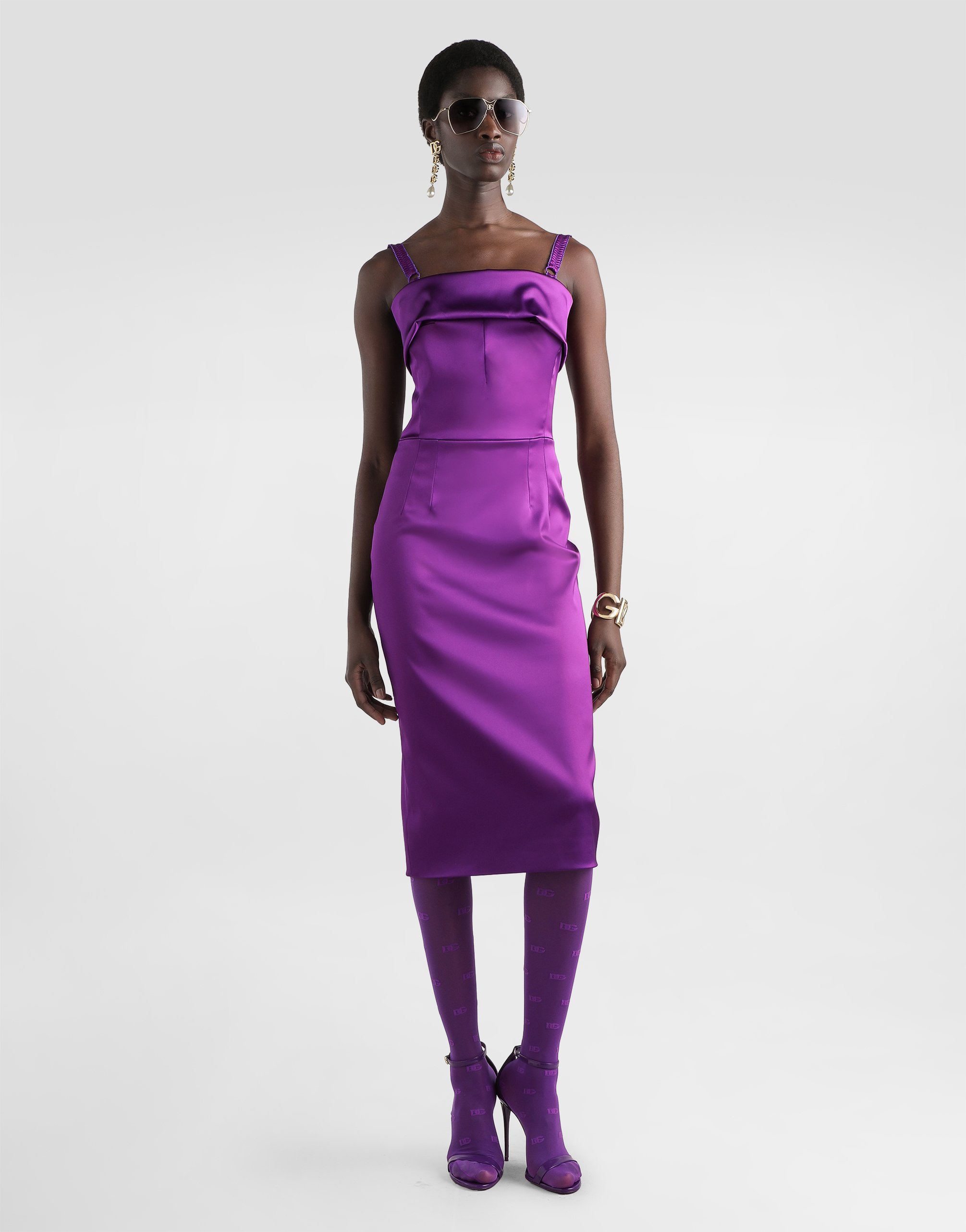 Приталенное сатиновое платье Dolce & Gabbana, фиолетовый