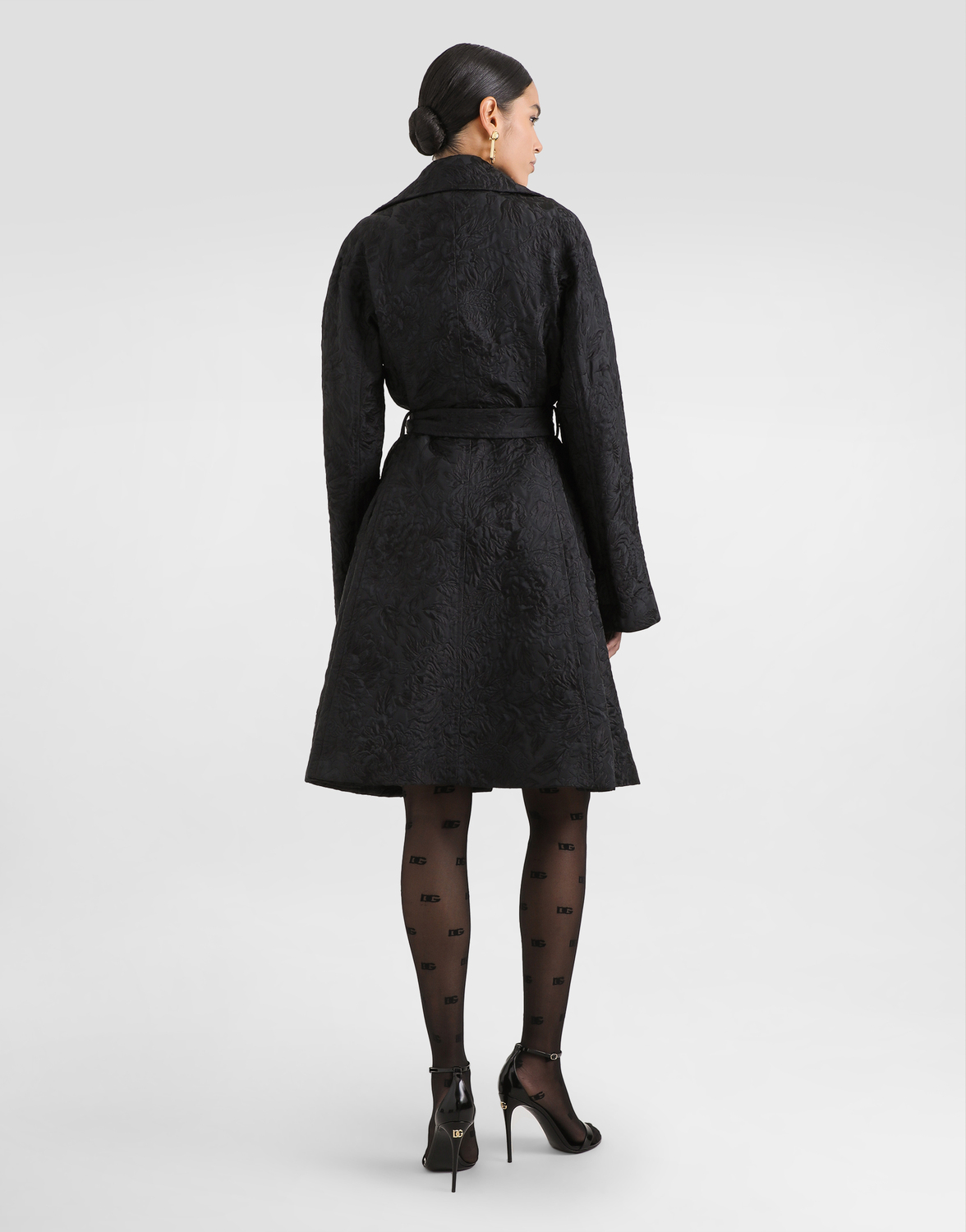 Платье из жаккарда с пионами Dolce & Gabbana, черный