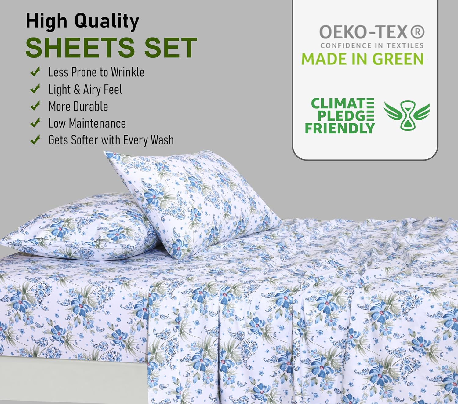 Комплект постельного белья для односпальной кровати. Простыня на резинке имеет глубокий карман (40 см) и прочную эластичную резинку по всему периметру, обеспечивающую надежную фиксацию на высоких и стандартных матрасах.