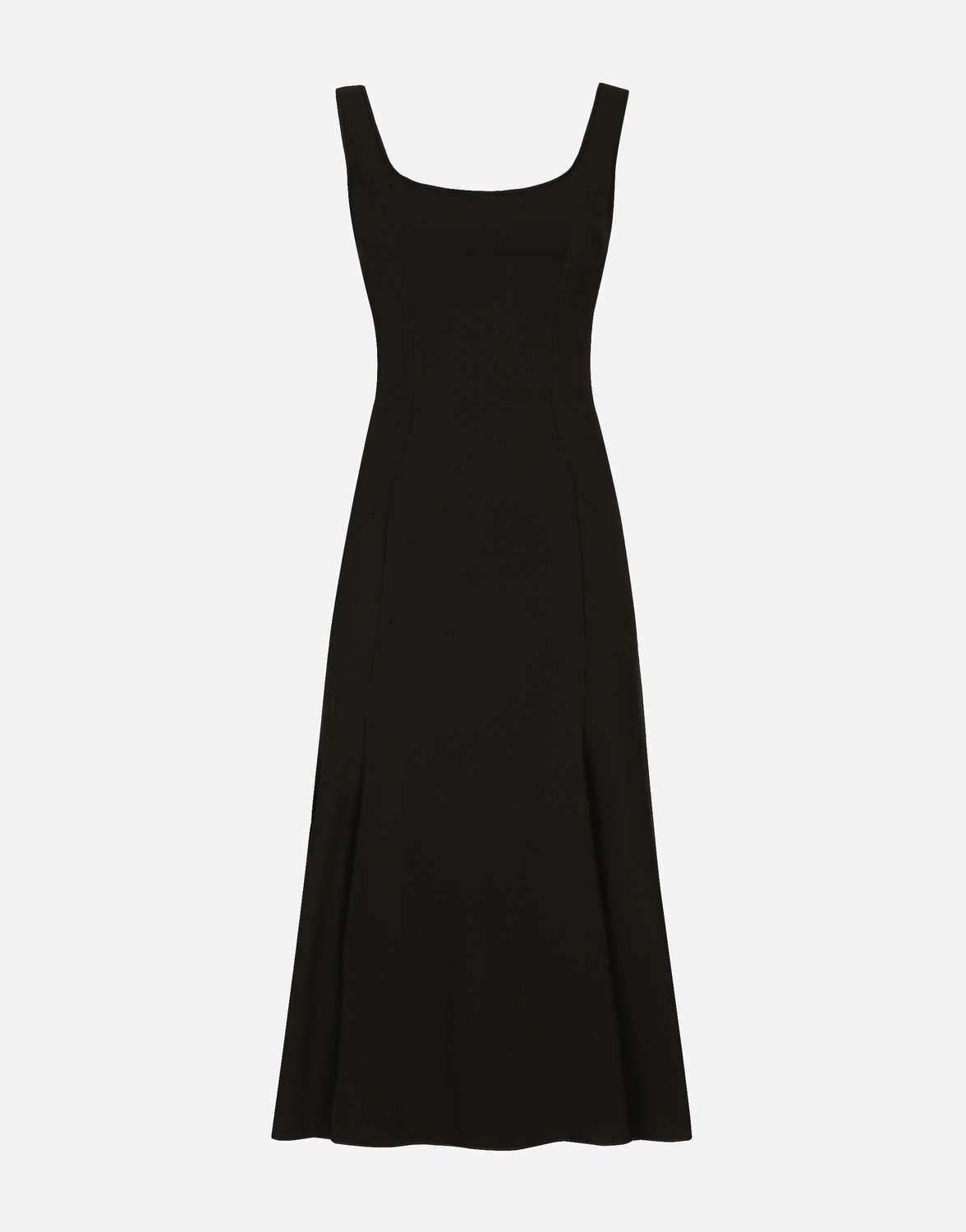 Платье миди из эластичного кадди: • Черный цвет • Круглый вырез • Без рукавов • Без подкладки • Незаметная застежка-молния и крючок с петлей на спинке • Длина изделия от талии вниз - 80 см для размера IT 40 • Модель ростом 175 см и носит размер IT 40 • Сделано в Италии