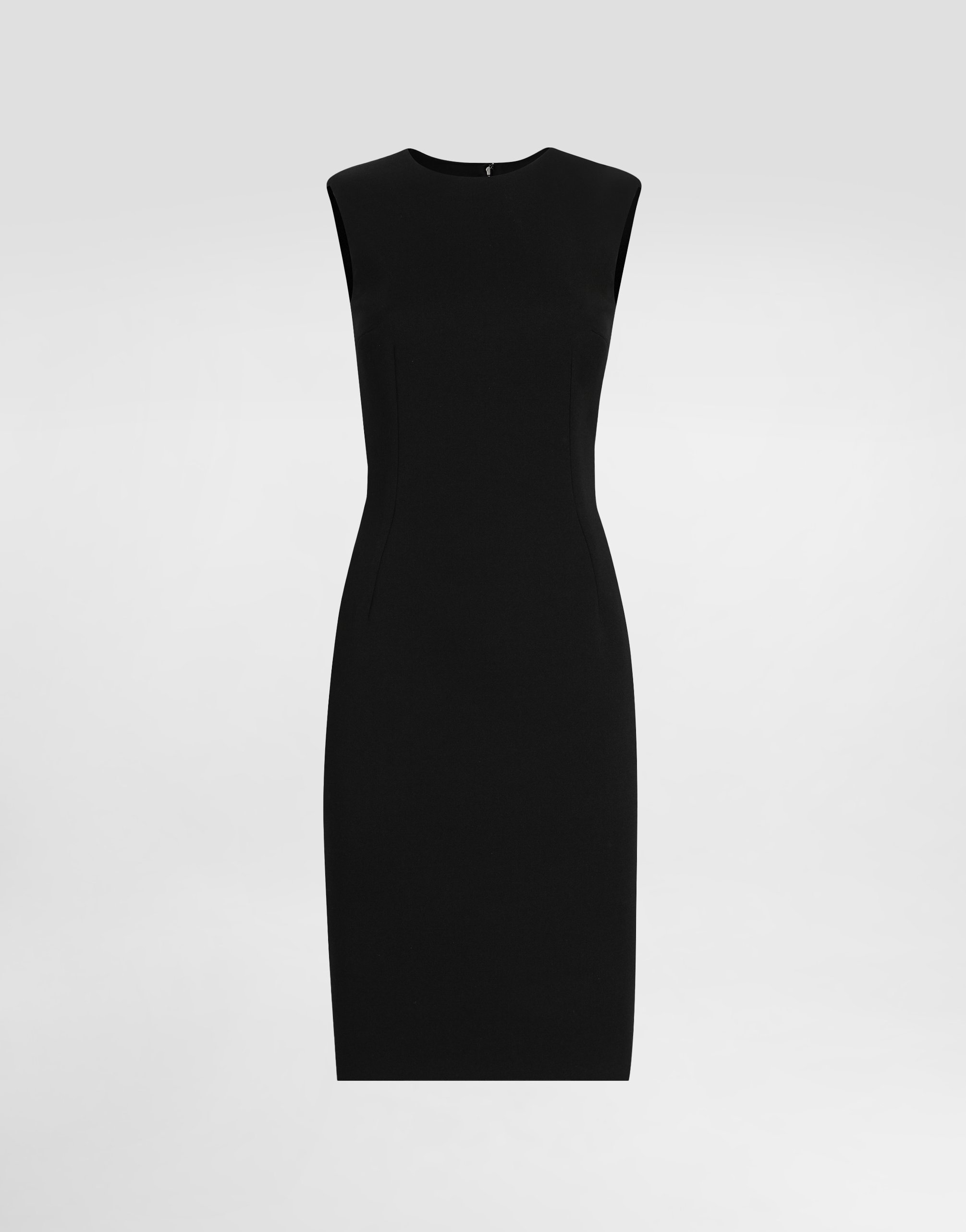 Платье-футляр миди из шерстяной габардины: • Черный цвет • Круглый вырез • Без рукавов • Подкладка из эластичного шелкового атласа • Застежка сзади на молнию и крючок • Длина изделия от талии - 60 см (размер IT 40) • Рост модели - 175 см, на ней размер IT 40 • Сделано в Италии