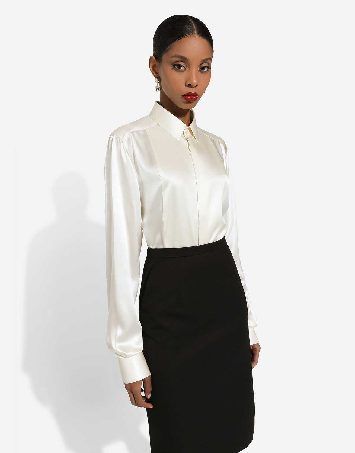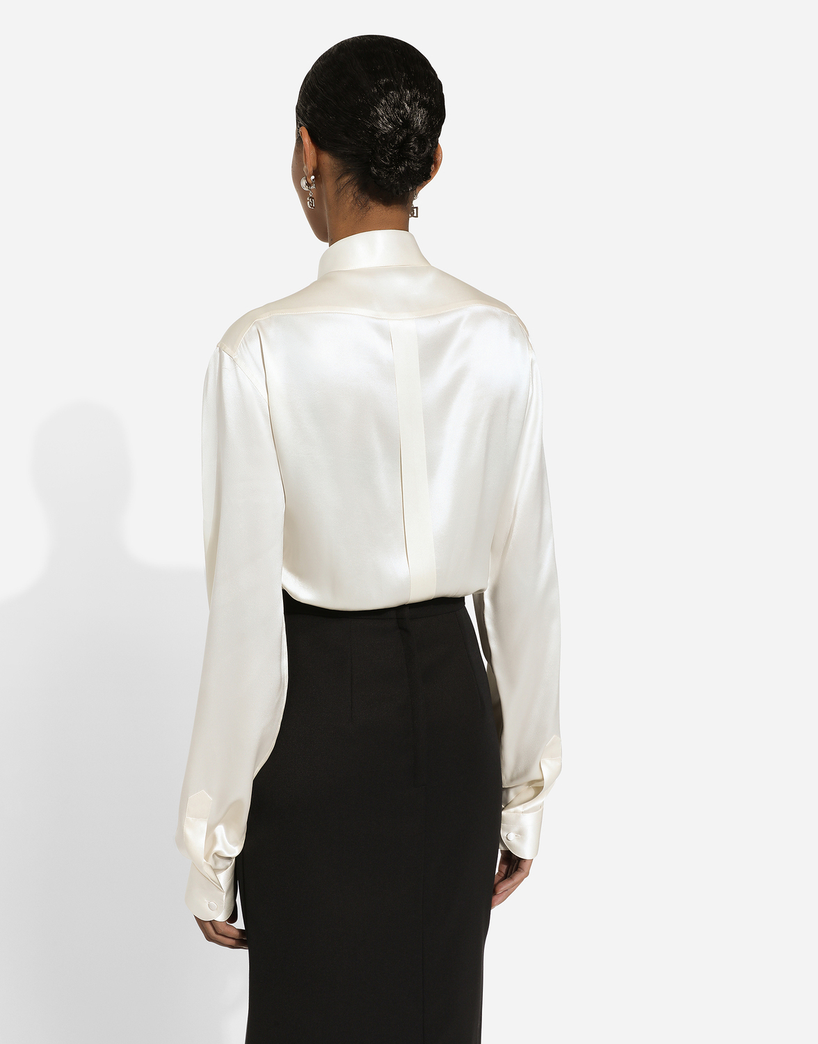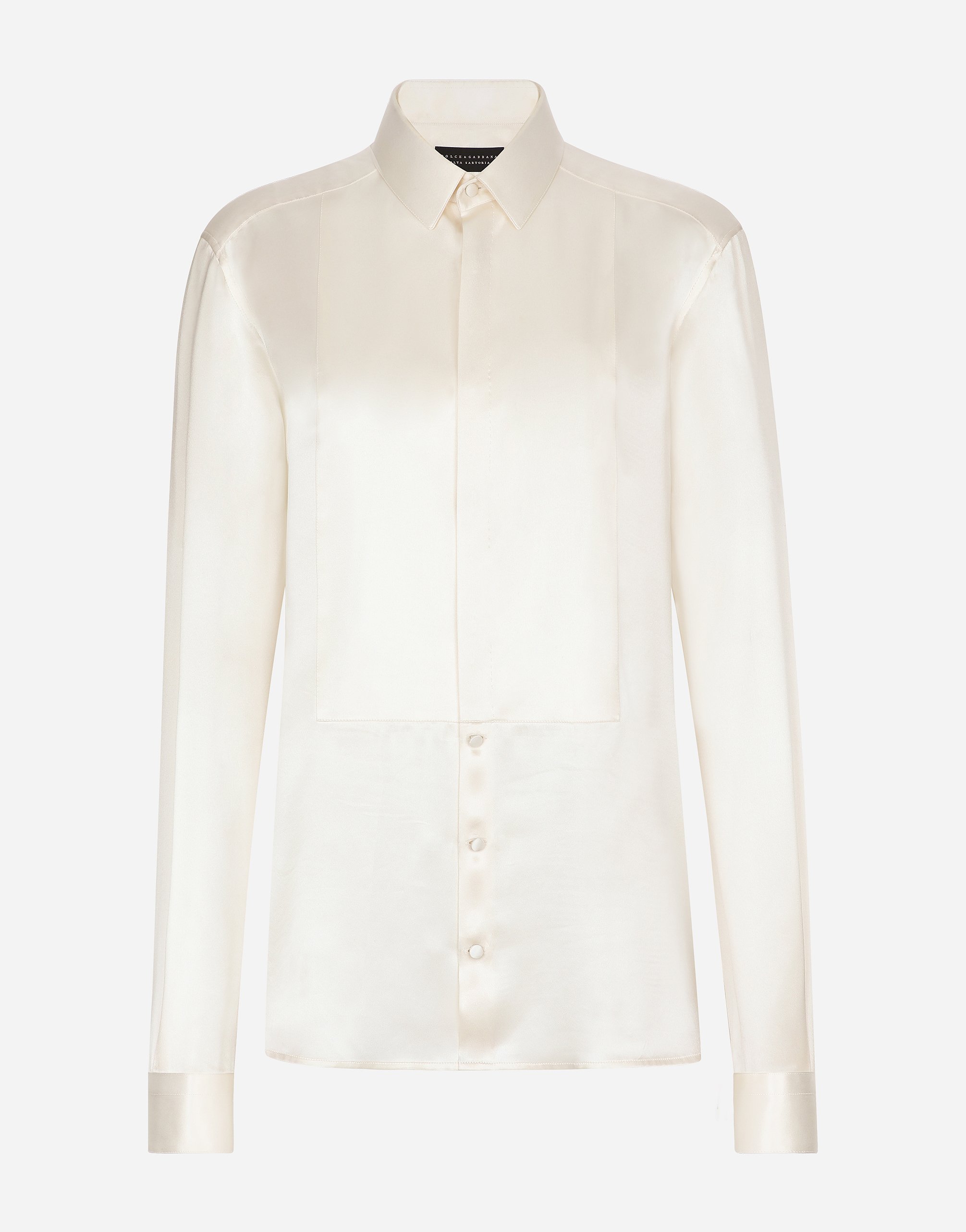 Шелковая рубашка с нагрудником Dolce & Gabbana, белый