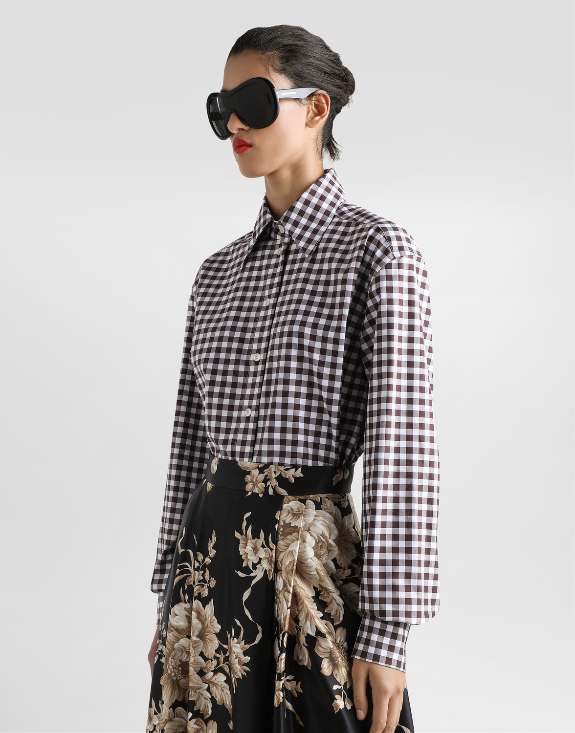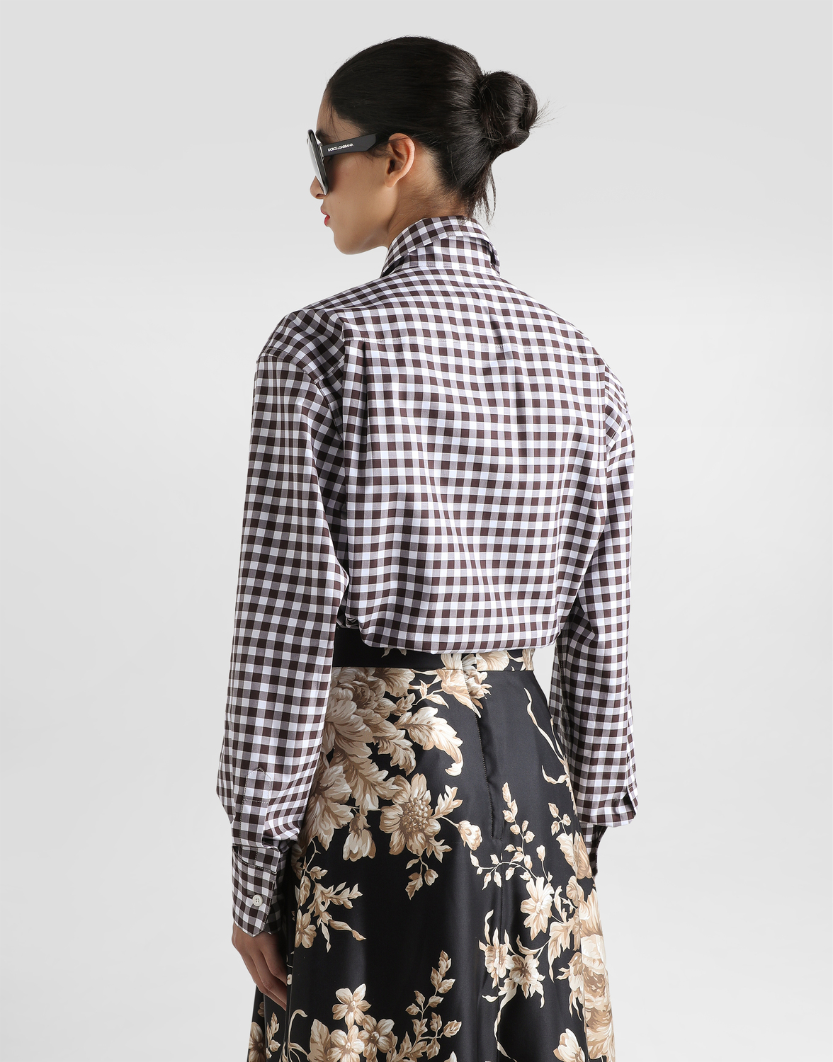 Эта хлопковая рубашка в клетку представляет собой идеальный баланс между повседневным и изысканным стилем, идеально дополняя гардероб любой женщины ноткой современной элегантности.