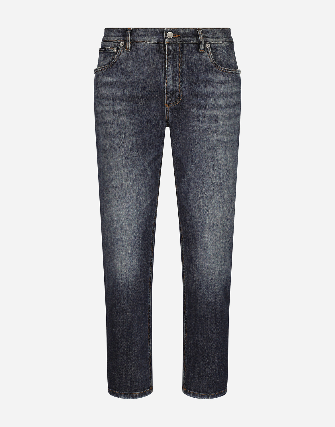 Свободные джинсы из эластичного денима с пятью карманами: • Синие • Прямой крой • Застежка на молнию и пуговицу, скрытые планкой • Вышивка DG на заднем кармане • Длина изделия по внешнему шву - 99 см, ширина низа - 18 см для размера IT 48 • Рост модели - 185 см, на ней размер IT 48 • Сделано в Италии