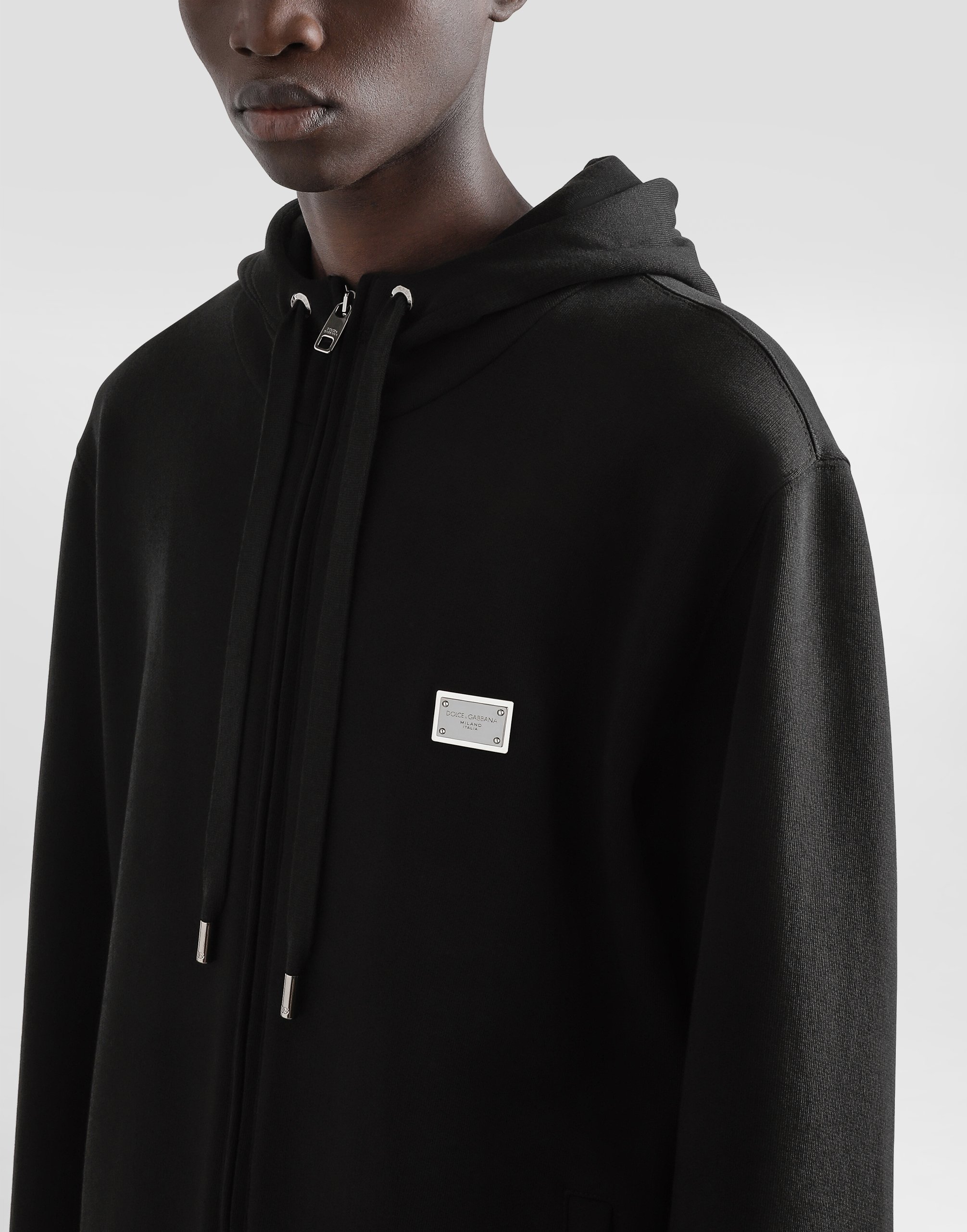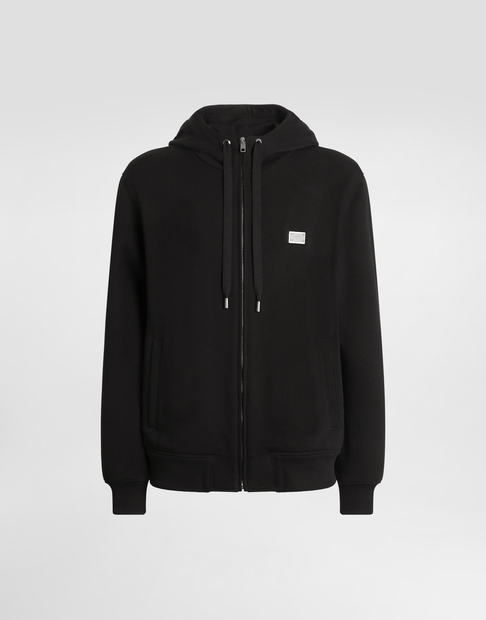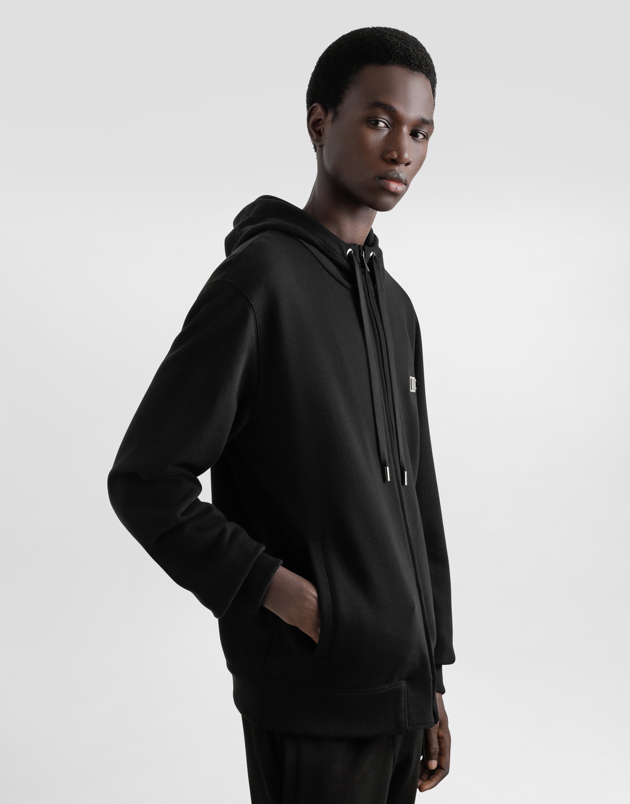 Худи из хлопкового джерси с металлической биркой-логотипом: • Черный • Классический крой • Молния и боковые карманы • Тонкая резинка на воротнике, рукавах и по низу • Длинные рукава • Длина изделия от плечевого шва 73,5 см для размера IT 48 • Сделано в Италии
