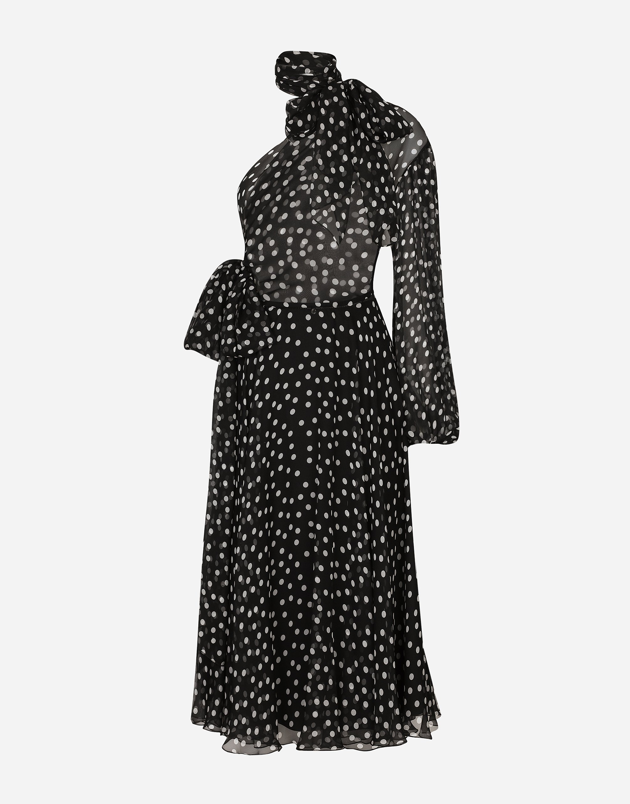 Шелковое платье на одно плечо в горошек Dolce & Gabbana, принт