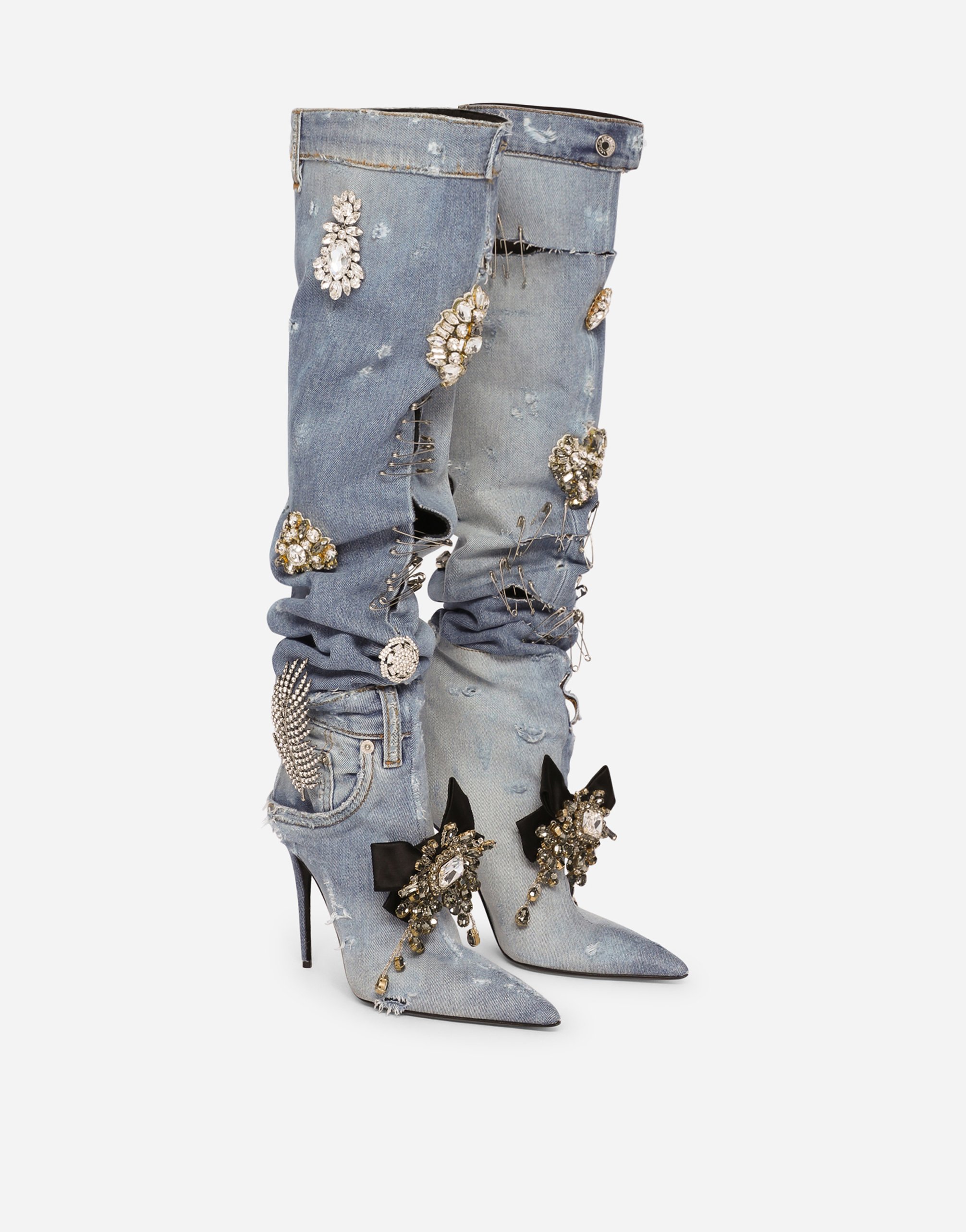 Джинсовые ботинки пэчворк с вышивкой Dolce & Gabbana, синий