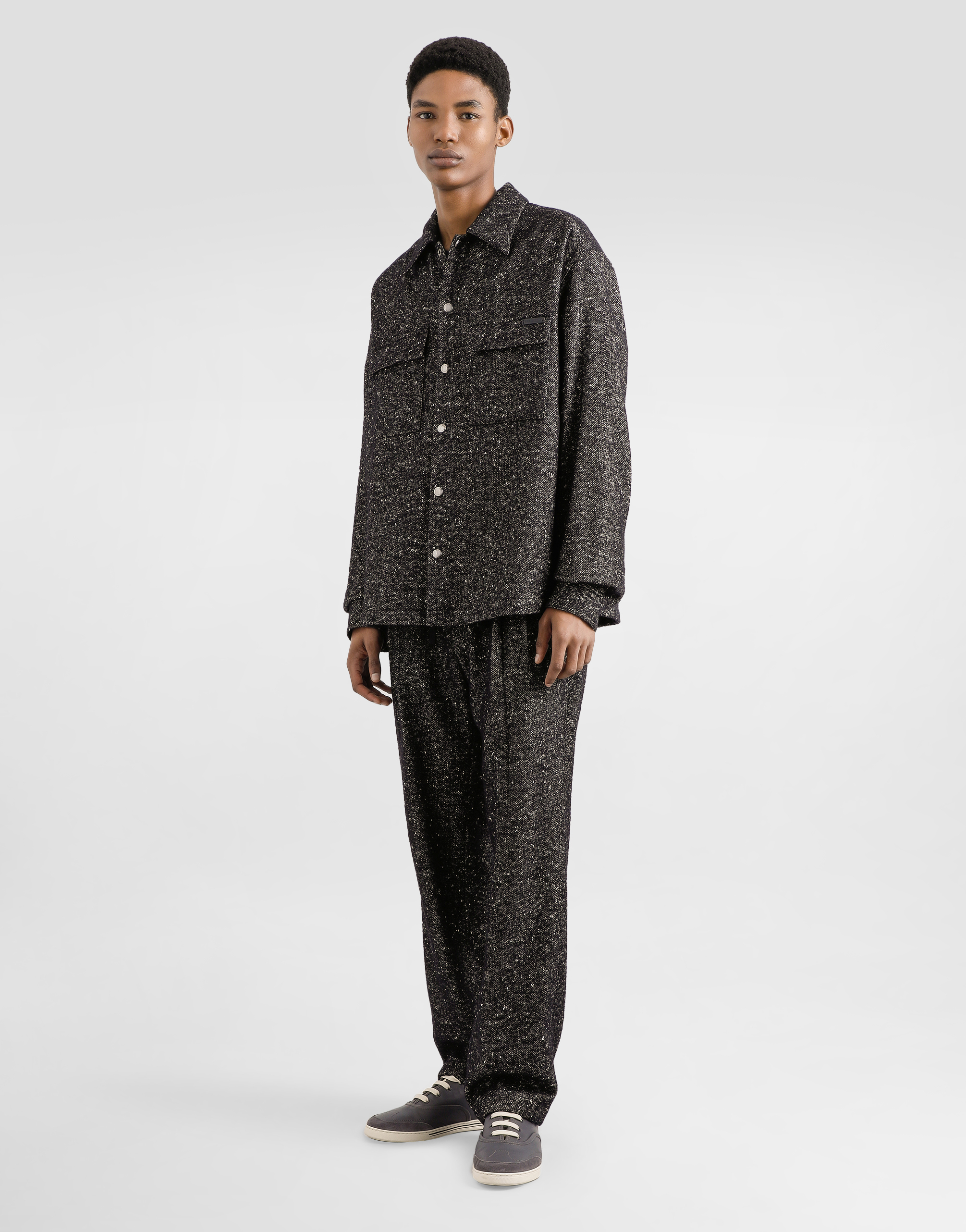 Сцена подготовлена для узнаваемых и культовых эстетических кодов Dolce & Gabbana в коллекции с мужского показа мод Осень/Зима 2025. Вечер загорается сияющими брошами и дополняется классическими костюмами и пиджаками вечной элегантности.