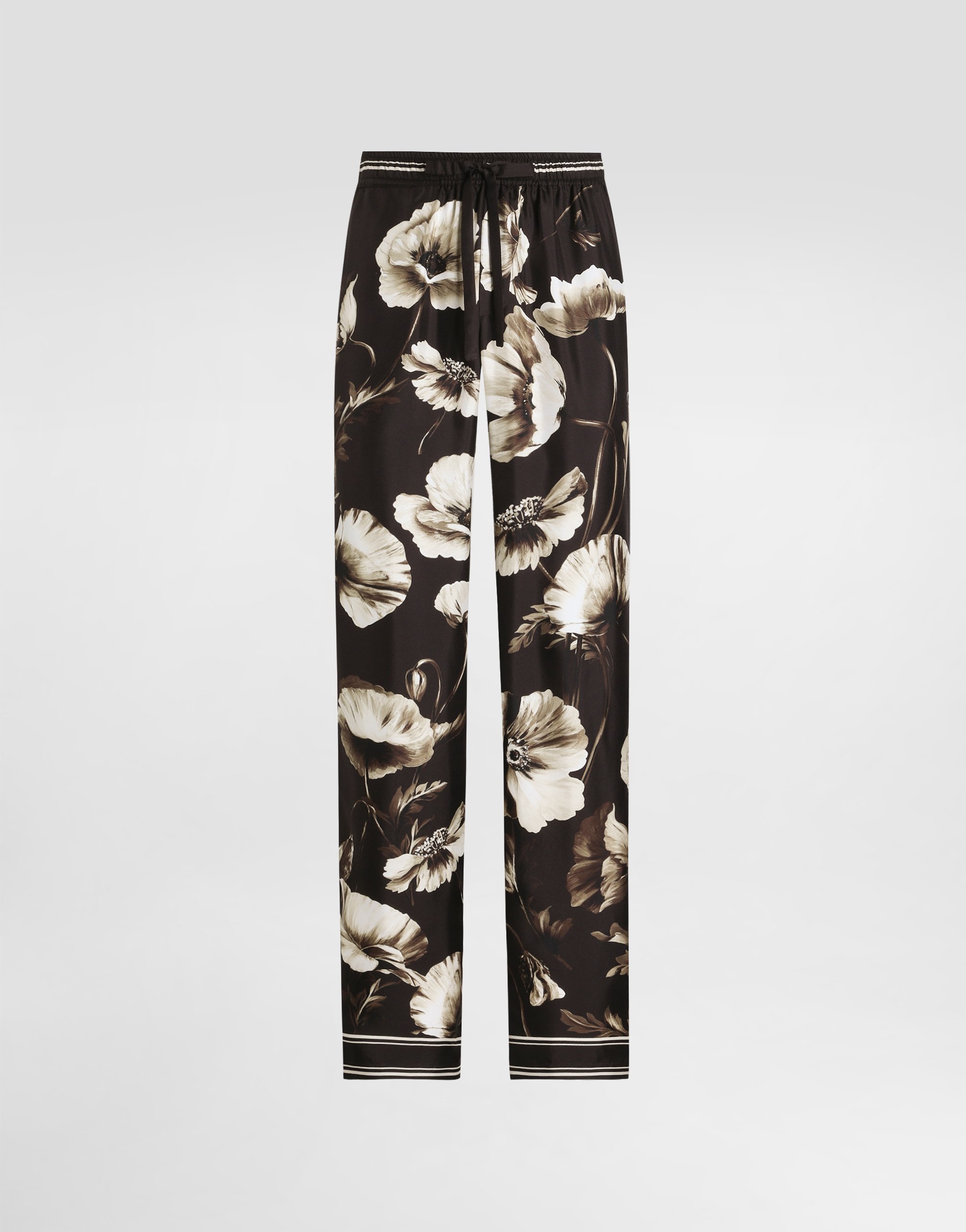 Брюки из шелкового твила с принтом маков Dolce & Gabbana, принт