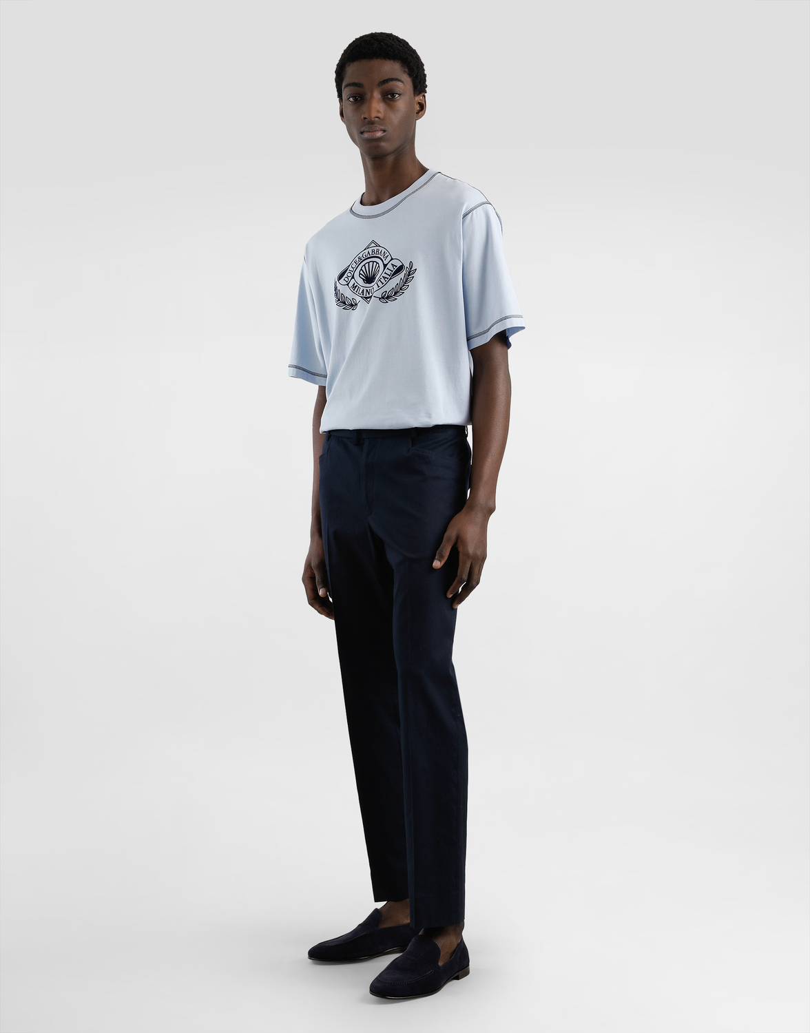Эти брюки из хлопкового габардина идеально подойдут для повседневного и комфортного образа, идеально для современного мужчины, который предпочитает неформальный стиль, но ценит внимание к деталям.