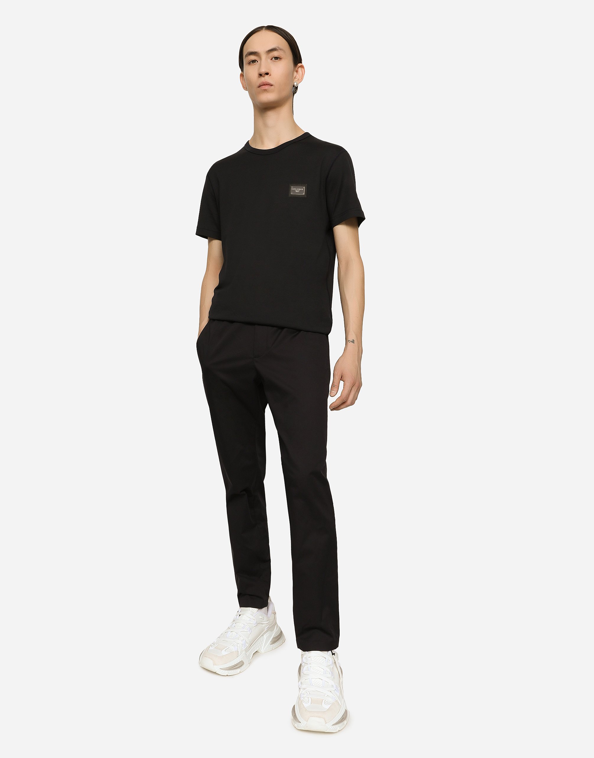 Брюки-джоггеры из эластичного хлопка с металлической биркой Dolce & Gabbana: