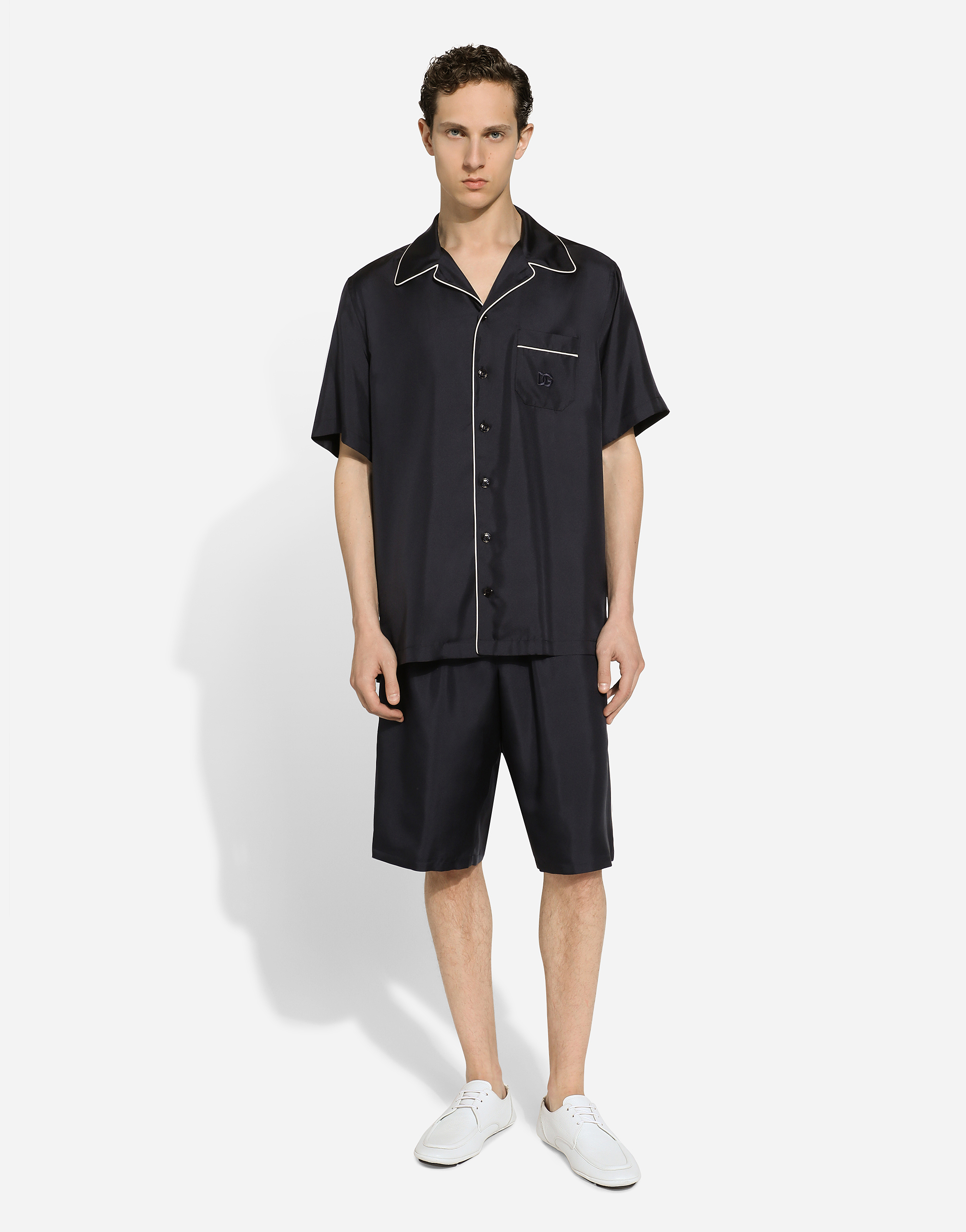 Шелковые джоггеры с вышивкой Dolce & Gabbana, синий