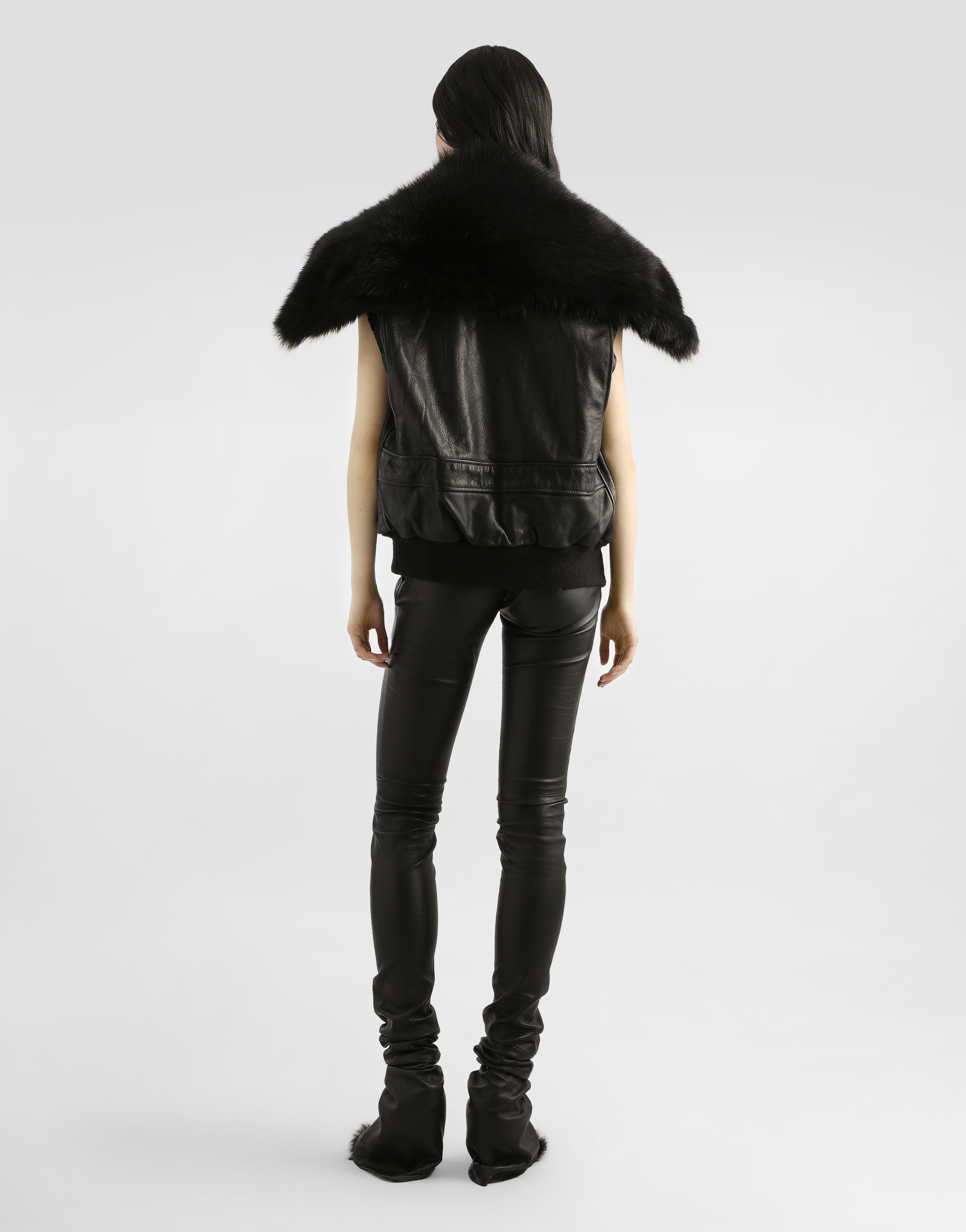В коллекции показа мод осень/зима 2025 дубленки в версиях без меха открывают платье-комбинации и создают игру контрастов, а деним обогащается вставками из ткани или леопардового принта. Свитшоты - результат длительных экспериментов с объемами. Вечерние образы становятся по-настоящему драгоценными благодаря платьям со специальной вышивкой и сияющими деталями из пайеток и кристаллов. Вставки из овчины объединяют также головные уборы, обувь и сумки, в том числе с карманами.